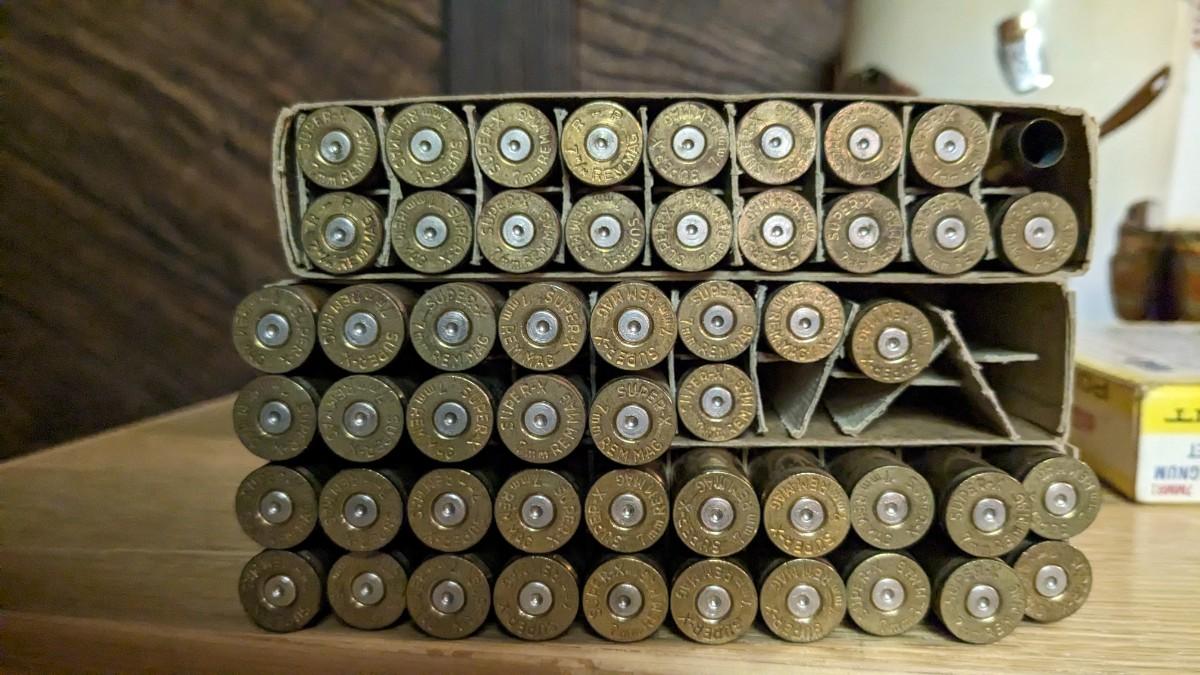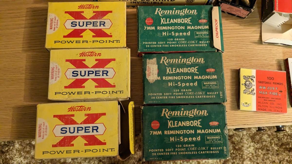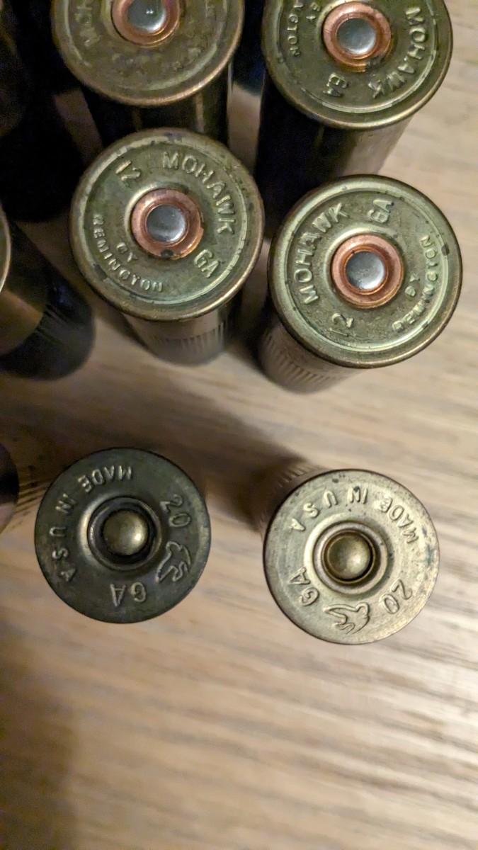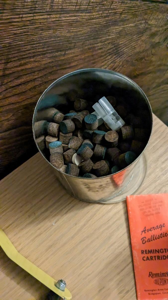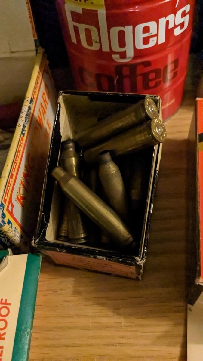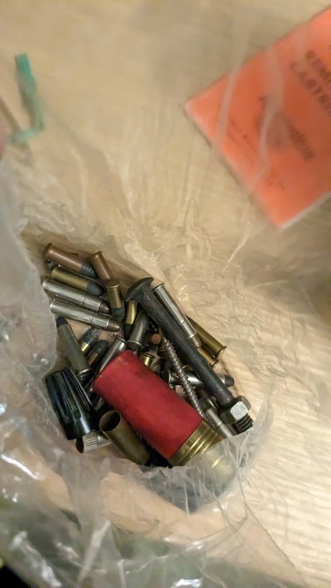 a stacked assortment of chilled shot, primers, shells, wad, and a small Herco container of gun powder. Also includes a partial box of shotgun shells. Please note sizes of shells and primers in photos. YOU MUST BE 18 TO BID AND PICKUP-CO SALES ONLY- NO SHIPPING. Basement