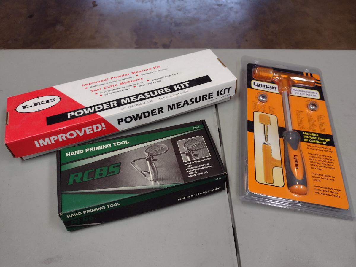 Reloading Accessories- Powder Measure Kit, Hand Priming Tool, and Puller