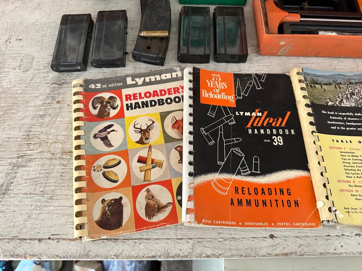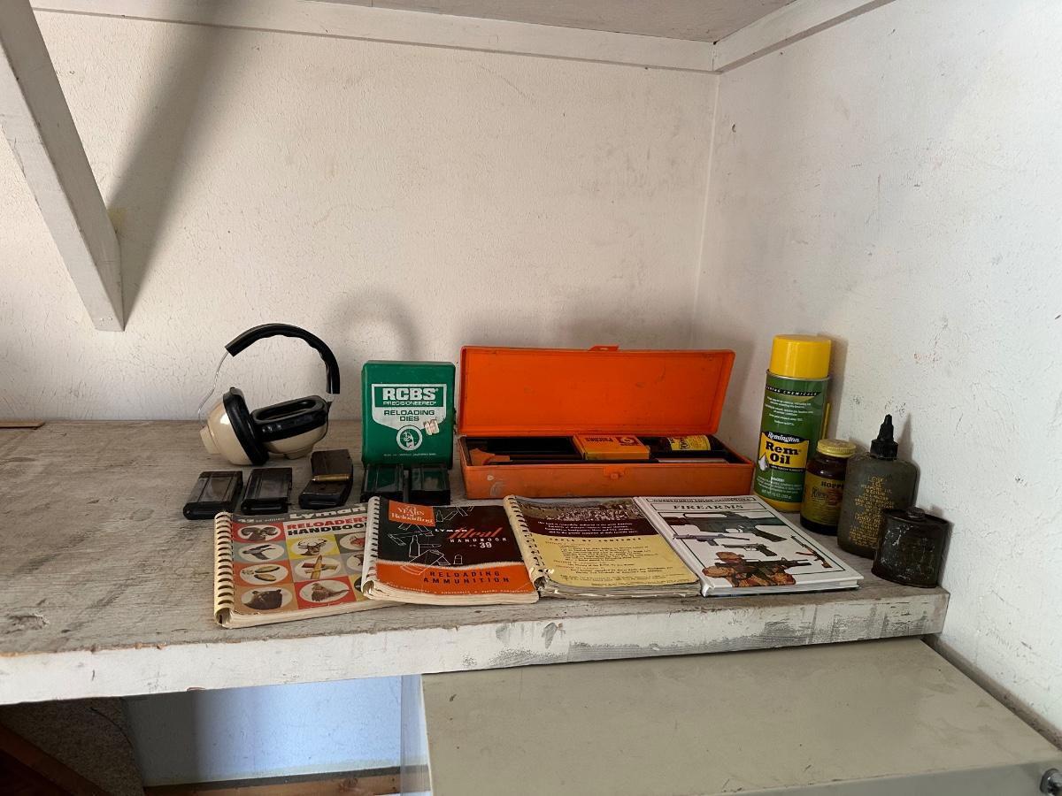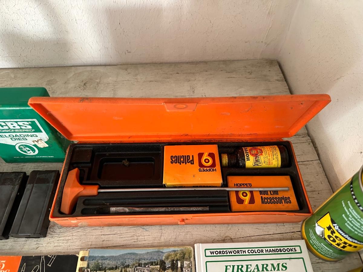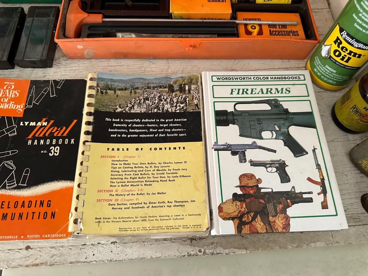 RELOADING EQUIPMENT AND BOOKS, MAGAZINES & GUN CLEANING KIT