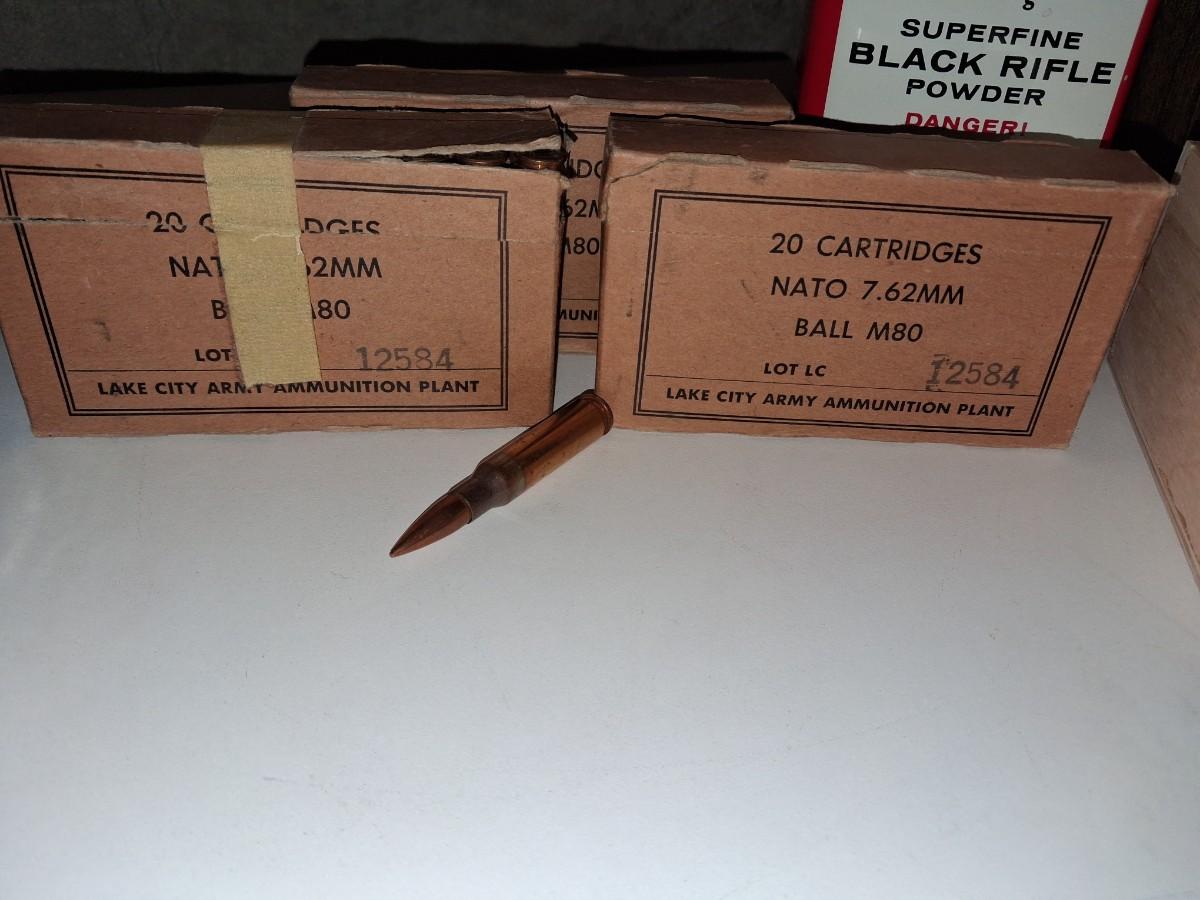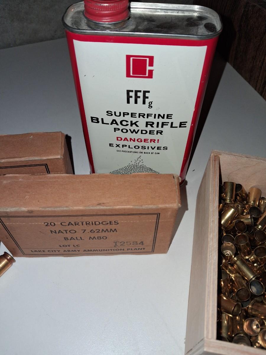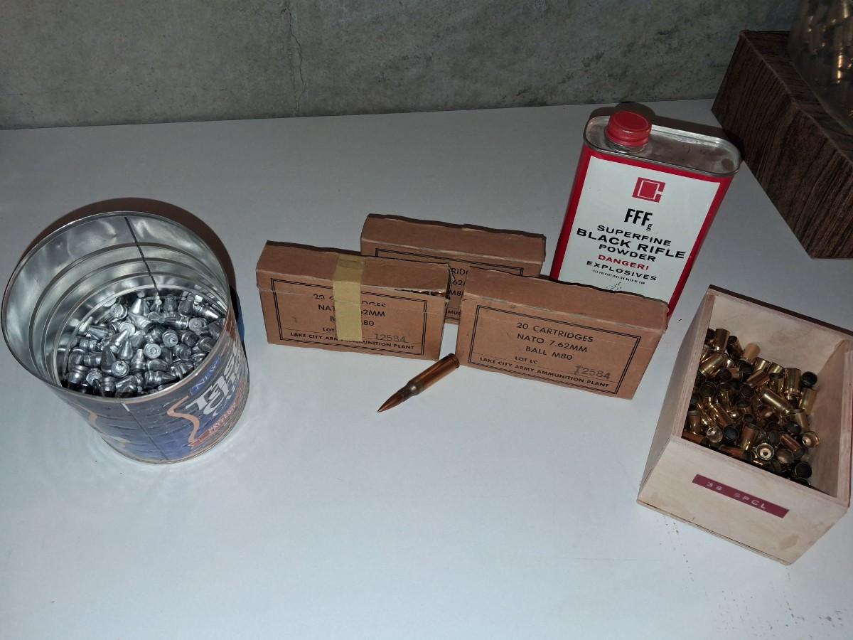 60 NEW NATO 7.62MM BULLETS, LEAD MOULD BULLETS BRASS SHELLS AND GUN POWDER