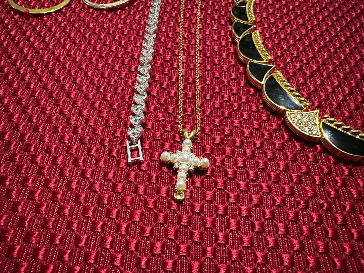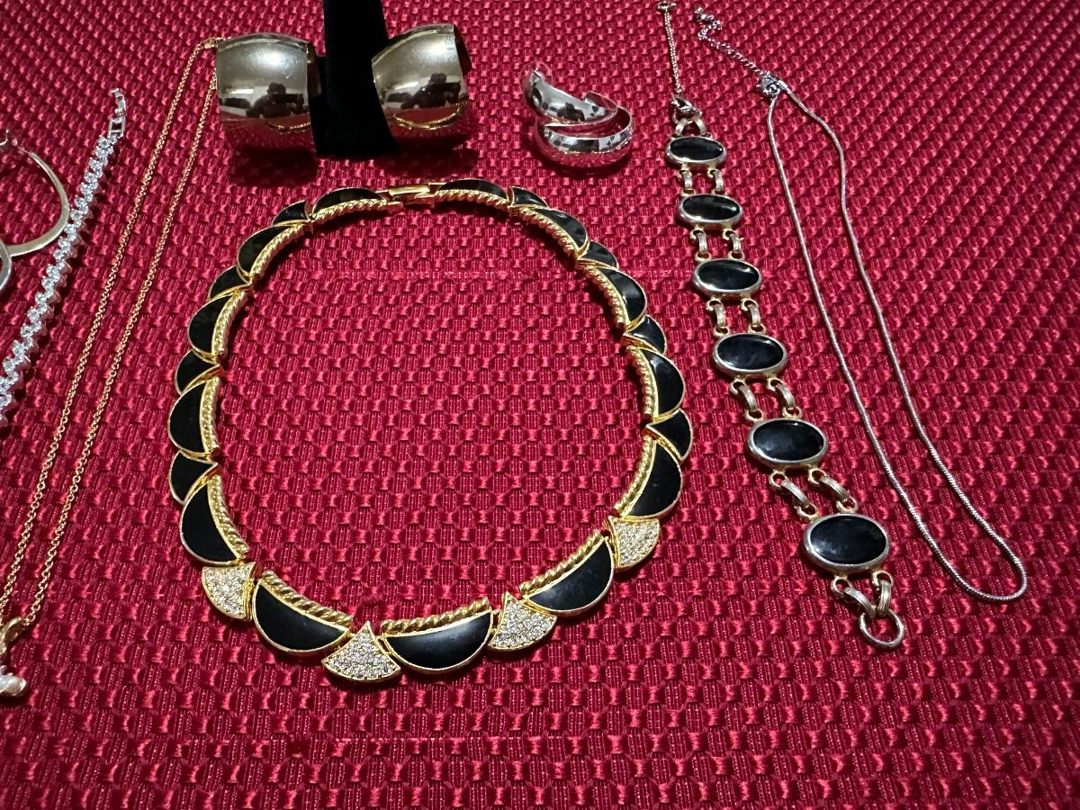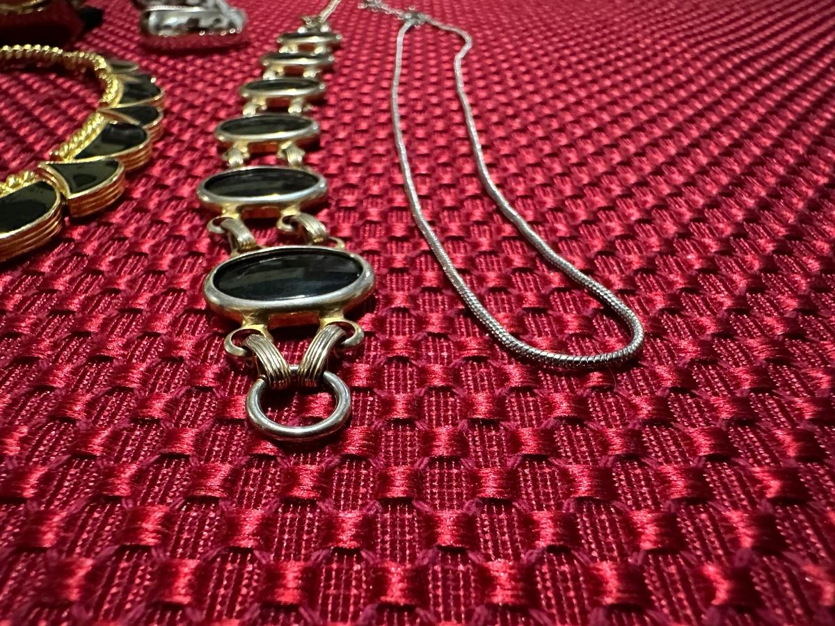 This lot contains 3 necklaces, 3 bracelets and 4 pairs of earrings.