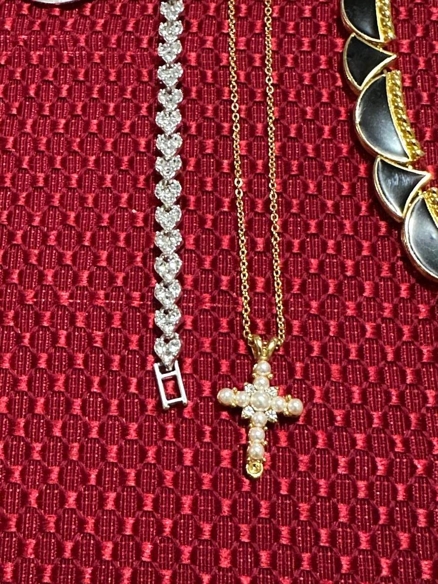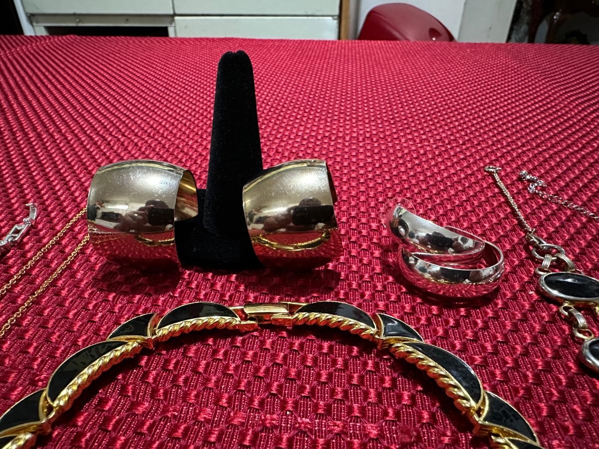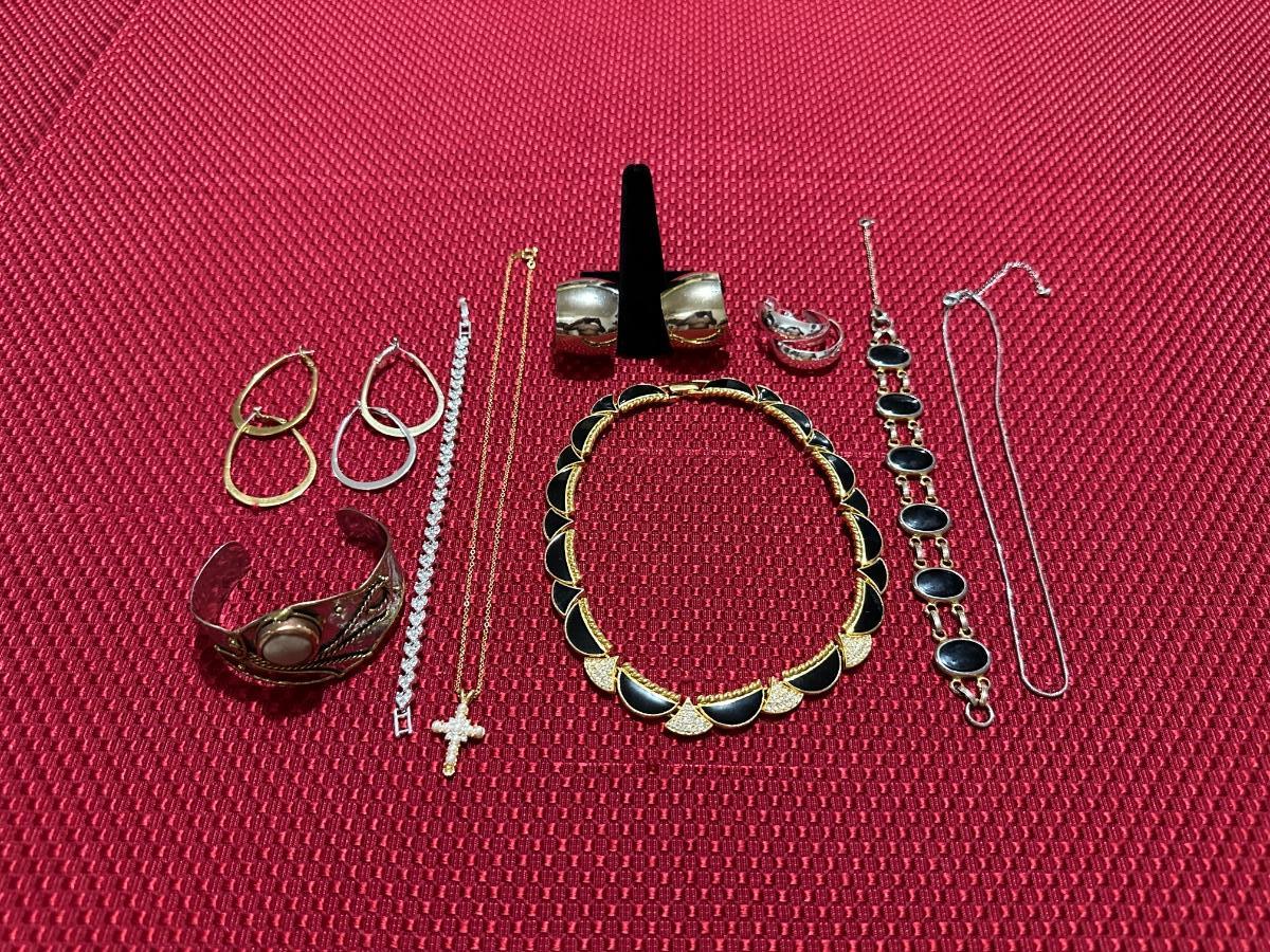 This lot contains 3 necklaces, 3 bracelets and 4 pairs of earrings.