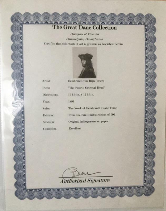 REMBRANDT “The Fourth Oriental Head” Original Heliogravure LOT 22