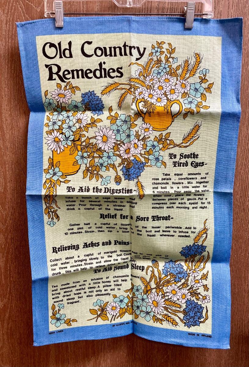Irish Ireland Vintage Kitchen Towel 100" Linen - "Remedies"