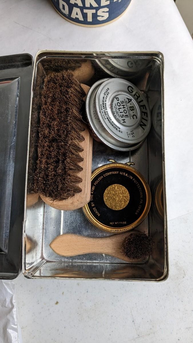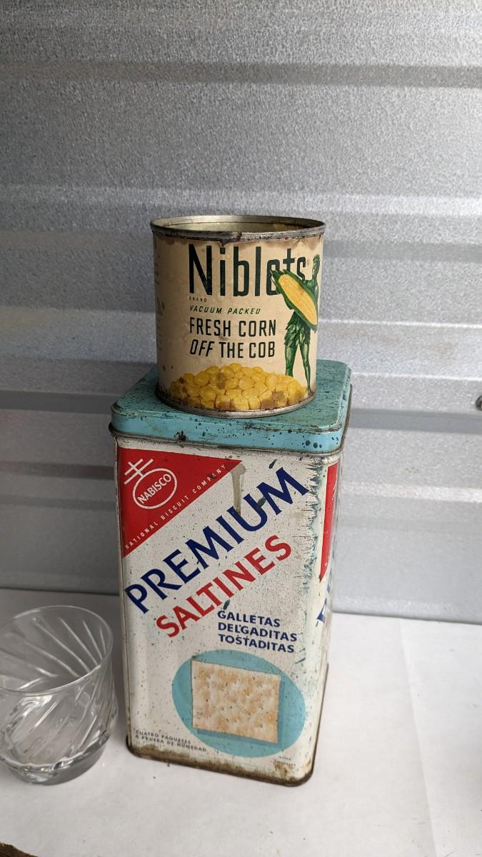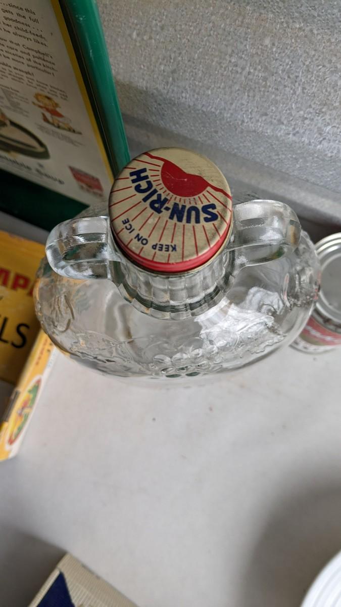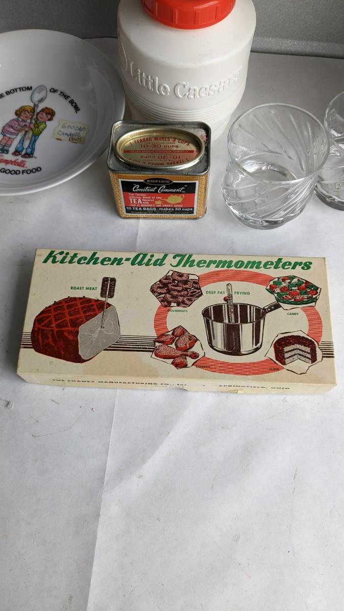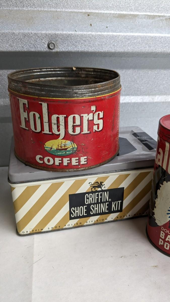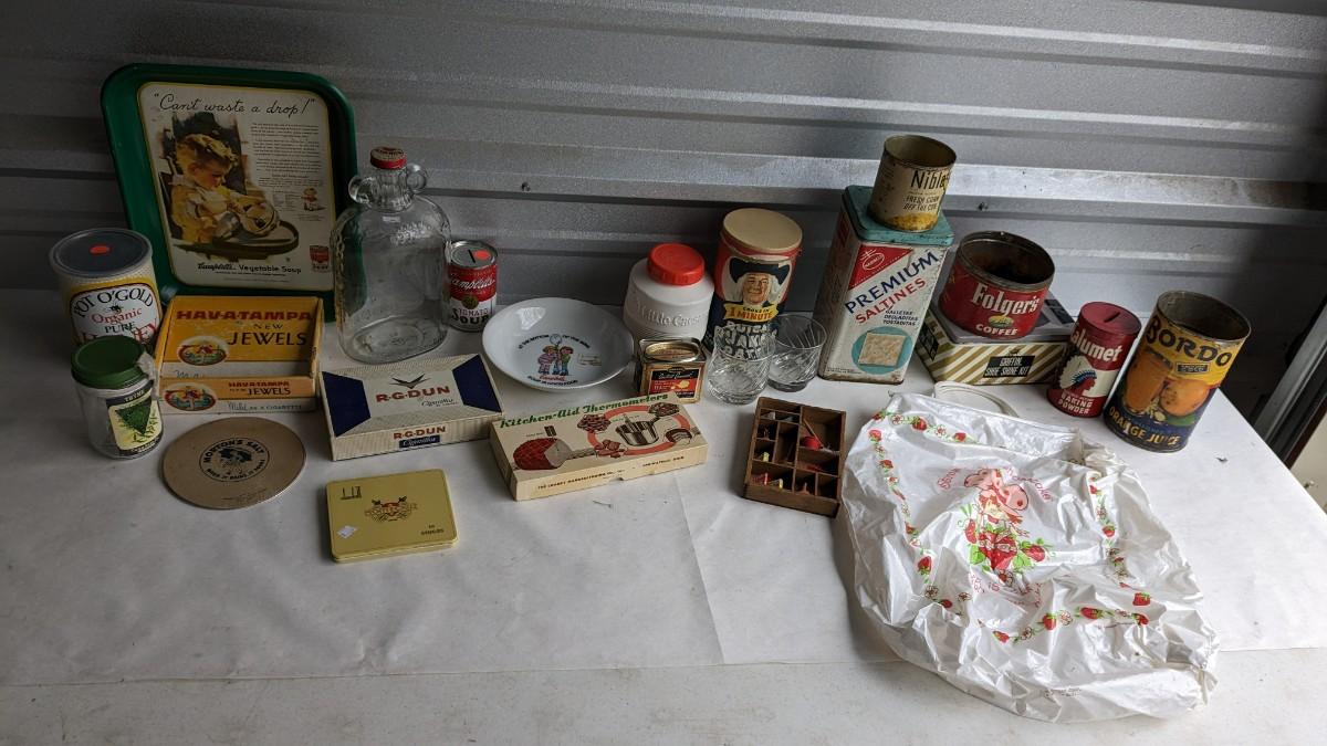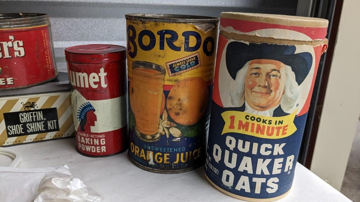 great old containers and promotional items from varying decades. wear noted to each piece but they all display well! 2616