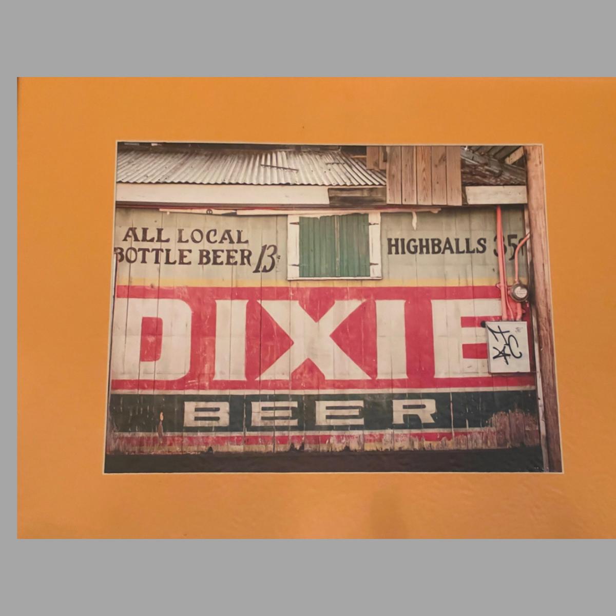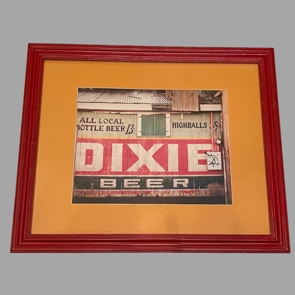 Framed sign of the old Dixie Beer building. Measures 18.5 x 22.5