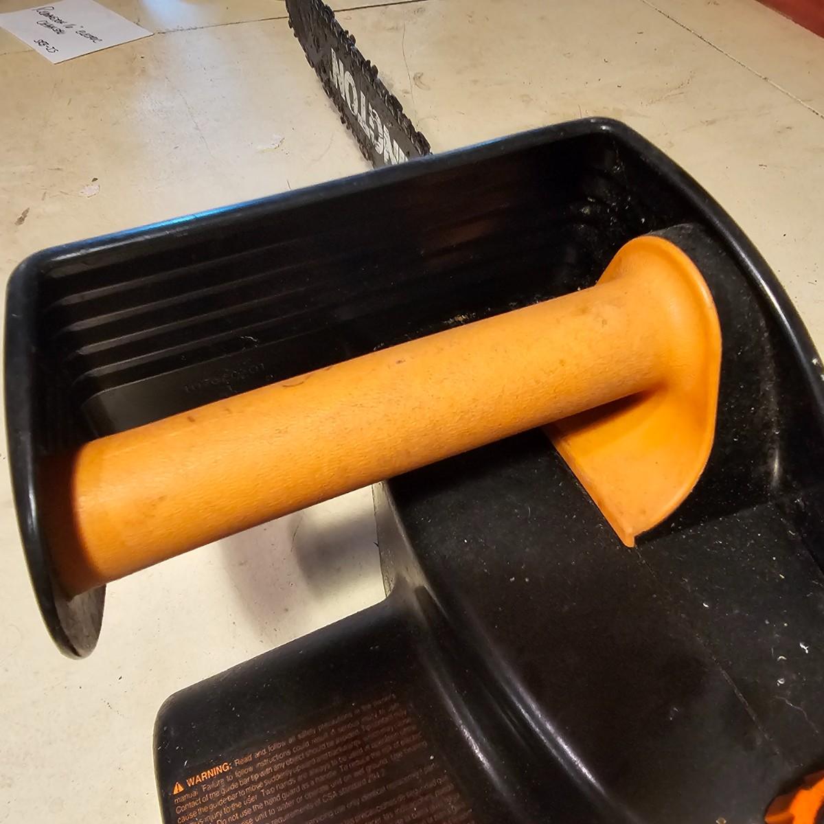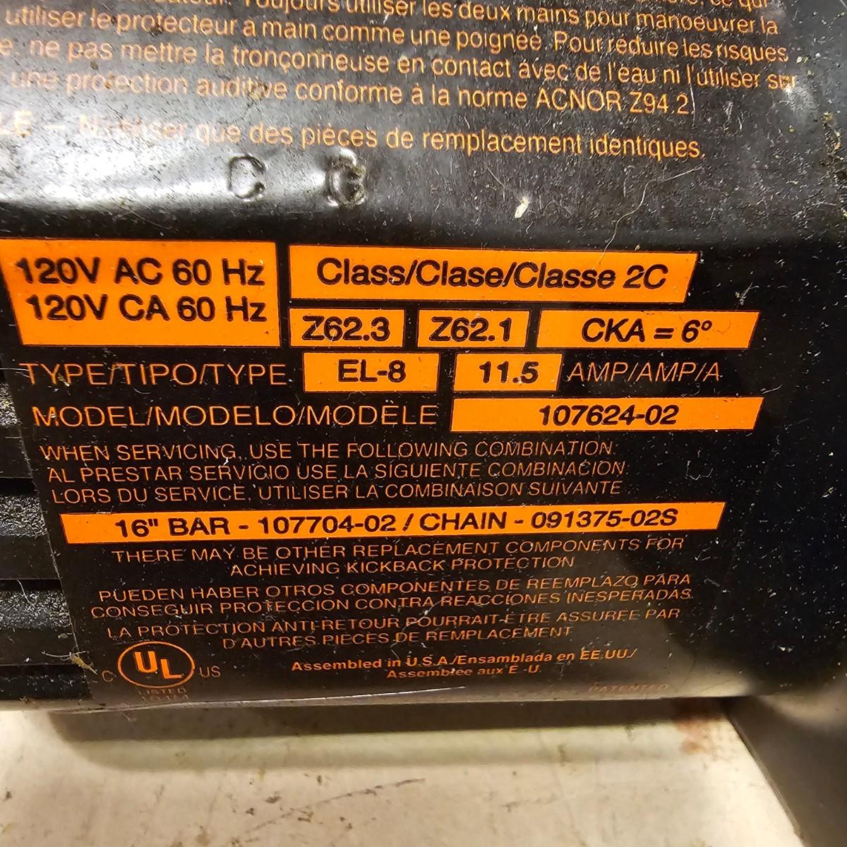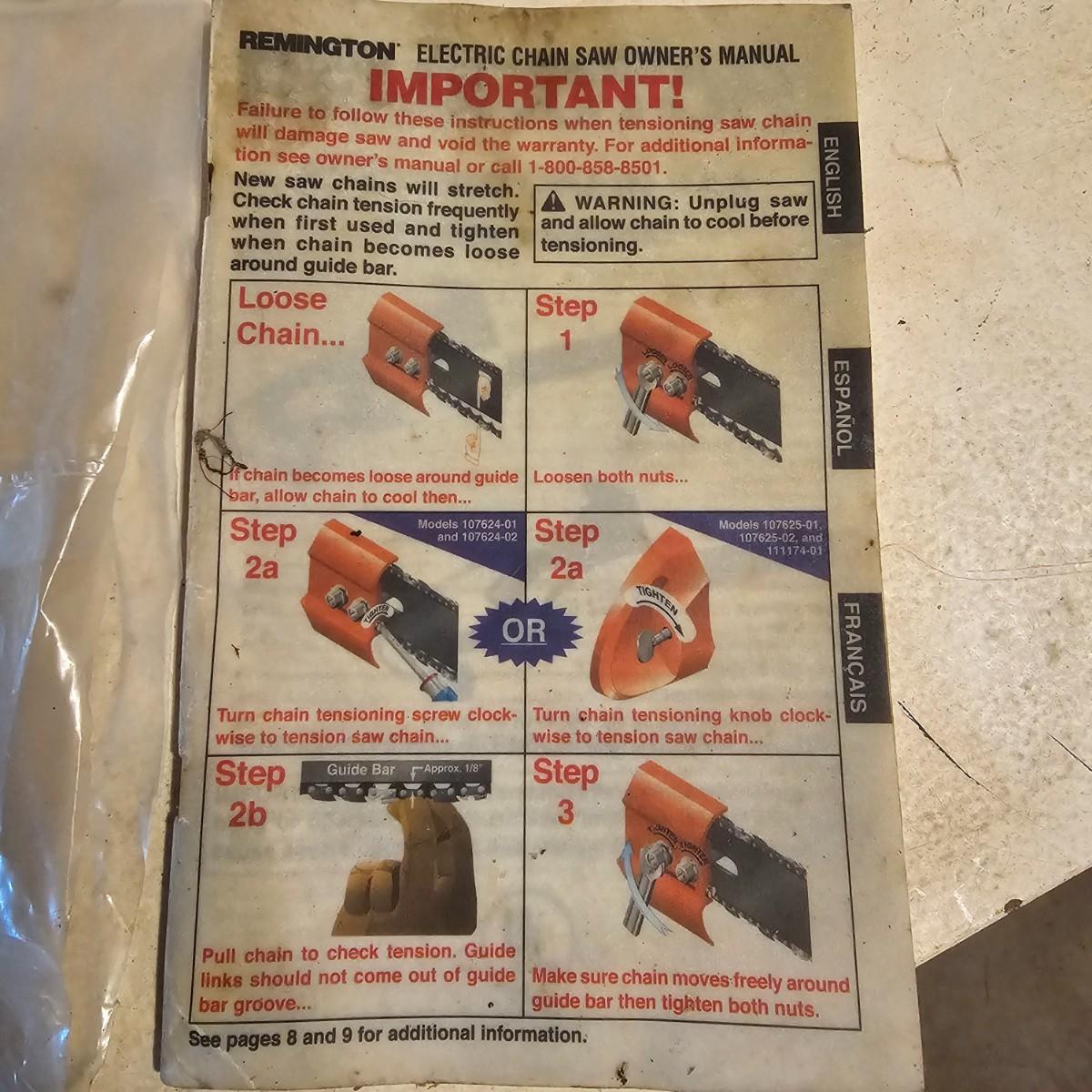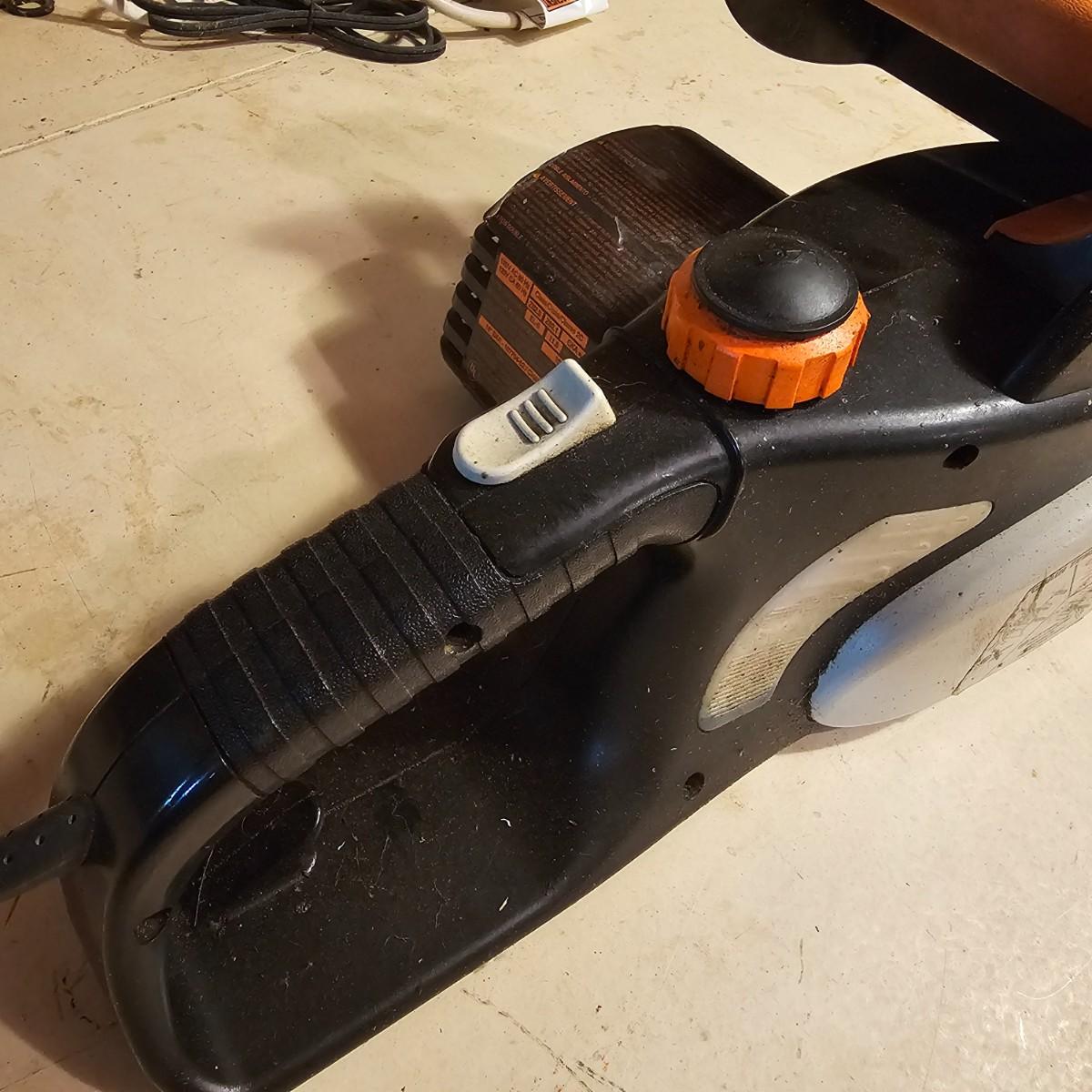 One used Remington brand electric chainsaw with 16" bar/chain. Handle guard, instruction book. Measures 31" x 9.5" x 9"H. Unit powered on when plugged in. See photos for details. Local pickup only.