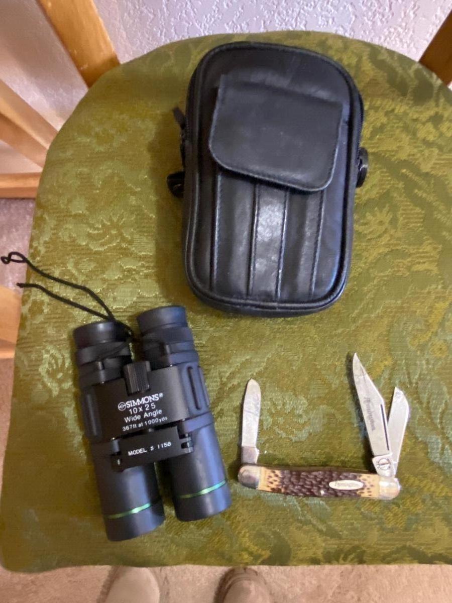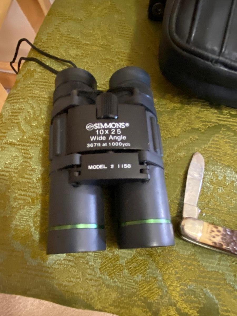 SIMMONS 10 X 25 WIDE ANGLE BINOCULAR & REMINGTON KNIFE
