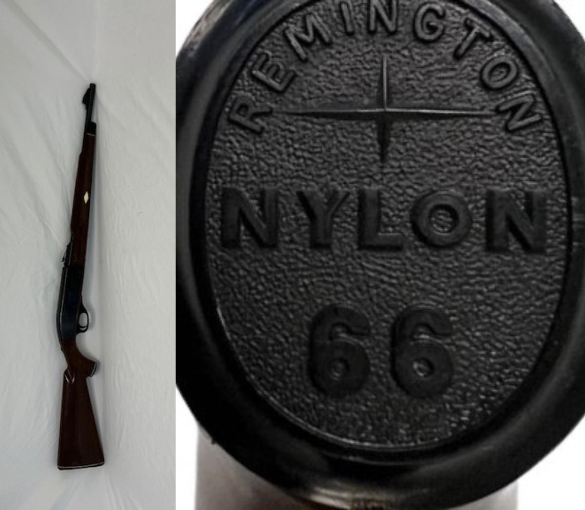 The Nylon 66 was manufactured by Remington from 1959 to 1989. This gun is believed to be made in 1959. No serial number found. Not tested. [KA]