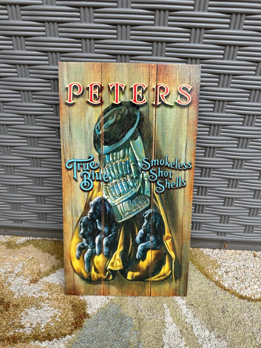 REMINGTON “PETERS TRUE BLUE PUPPIES” WOOD SIGN