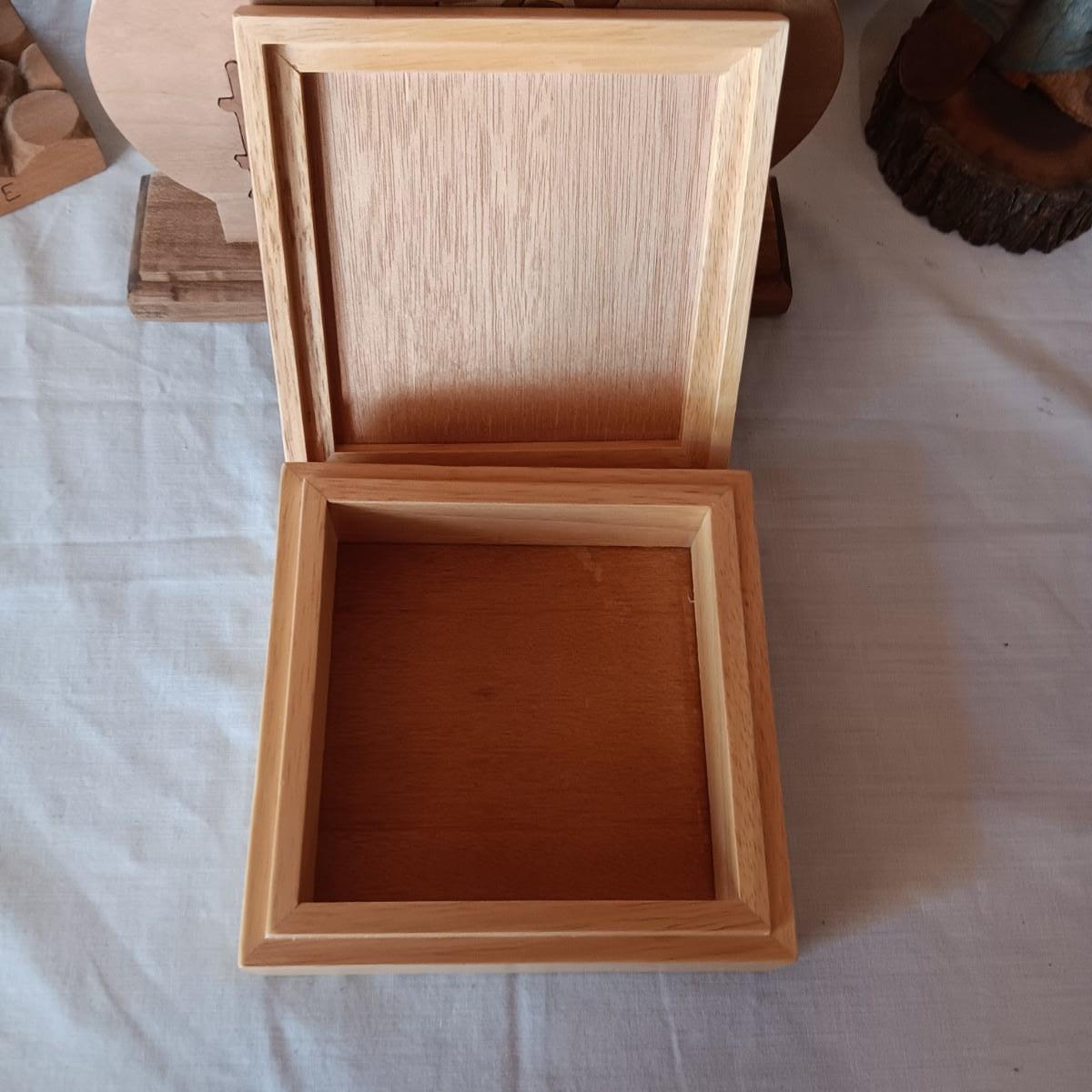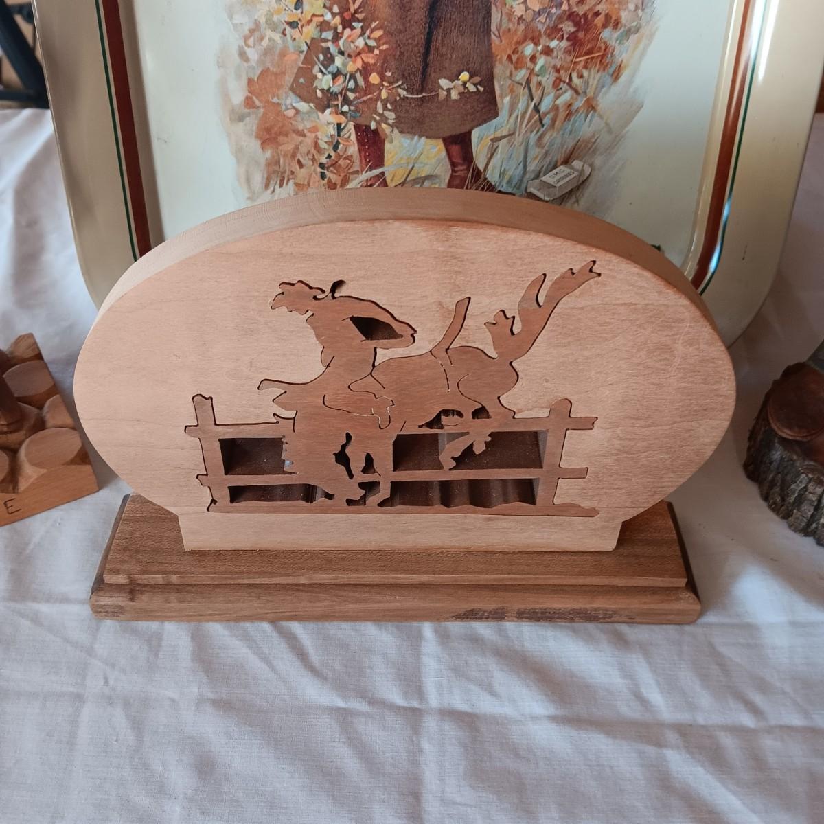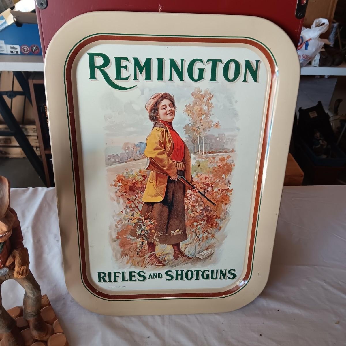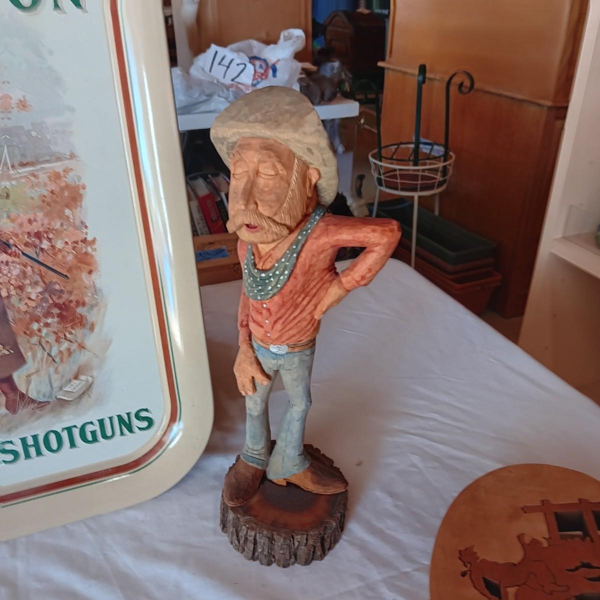 REMINGTON TIN TRAY, HAND CARVED COWBOYS, WOODEN BOX AND INLAID BUCKING BRONCO