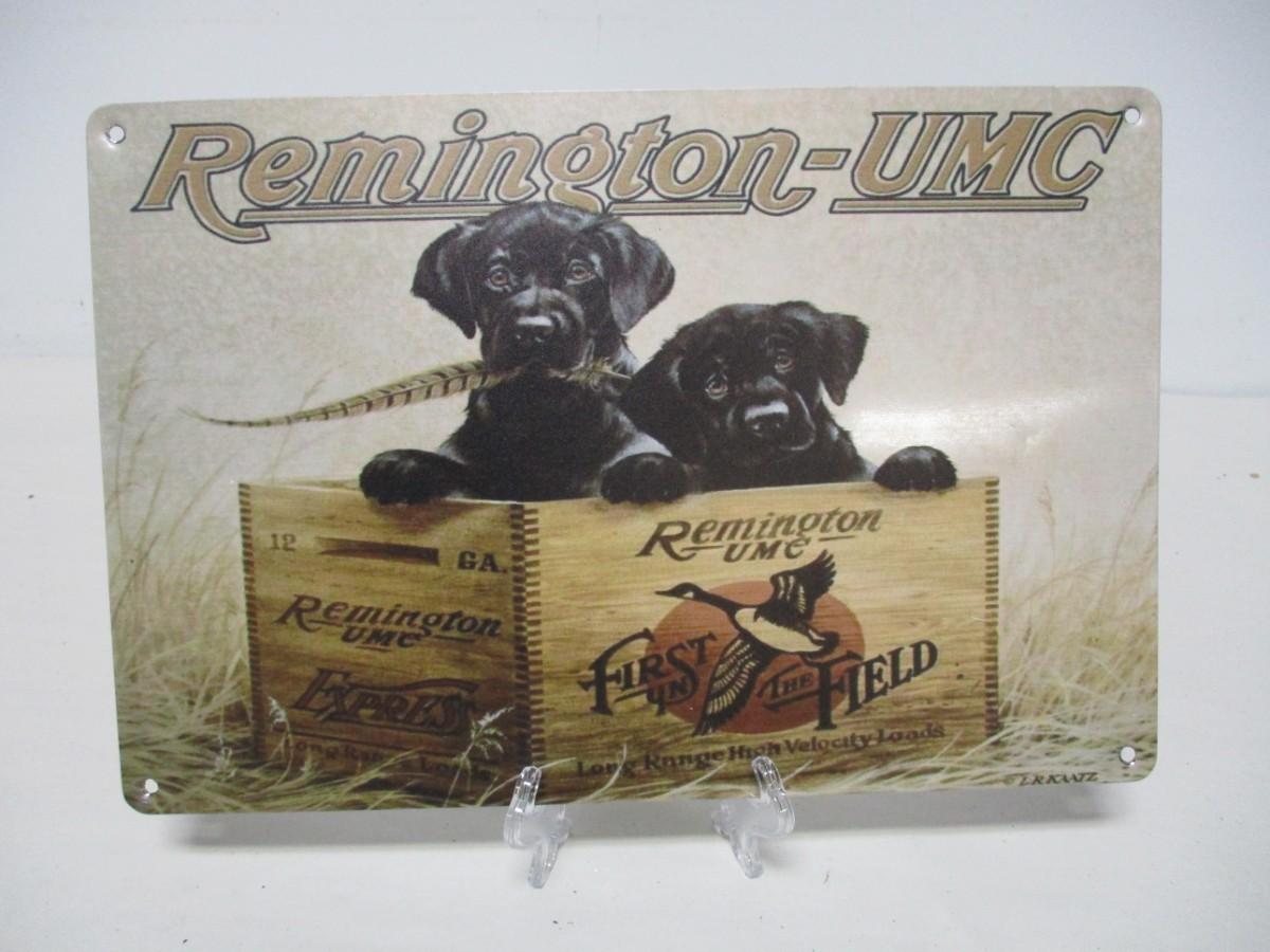 Remington UMC Finders Keepers Black Labrador Puppies Tin Metal Sign