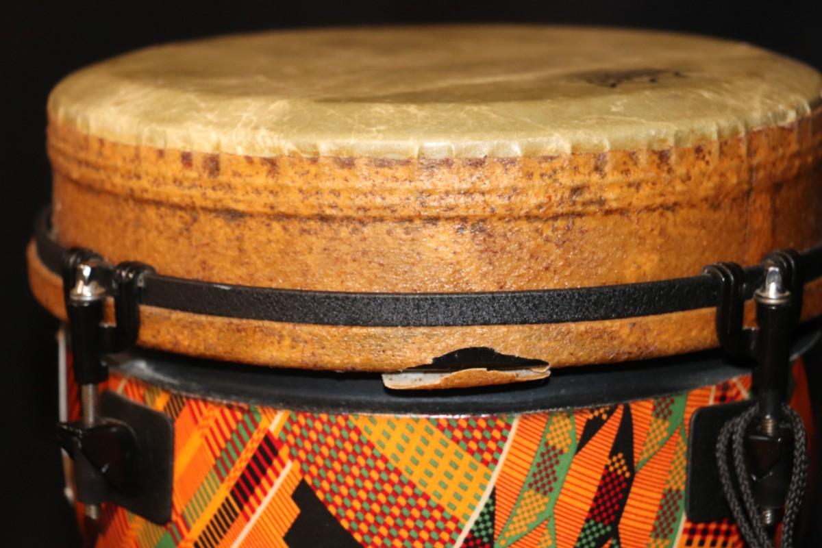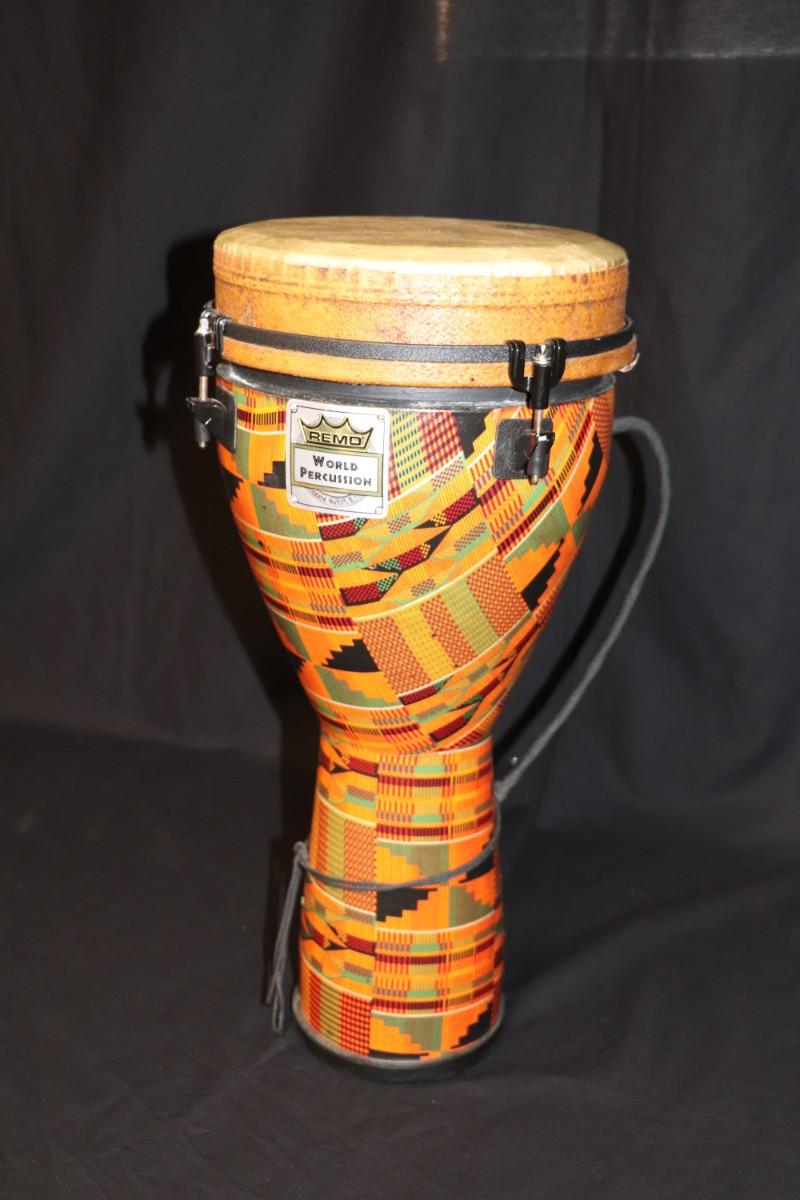 Remo World Percussion Djembe Drum in Kintekloth Finish. Condition as shown.