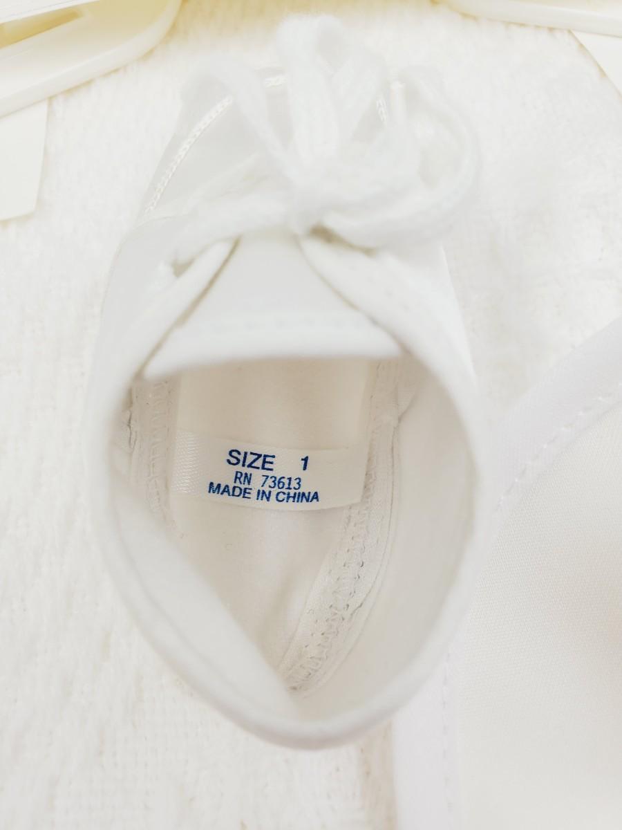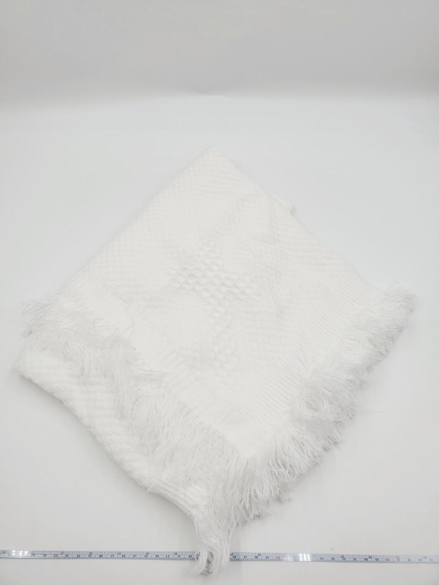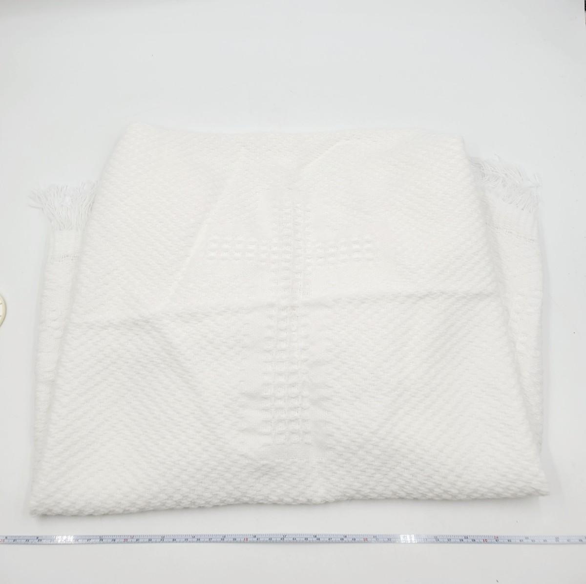 Set includes 1 soft white baby blanket with fringe, cross in the middle and on each corner. 1 pair of size 1 soft baby shoes, a bonnet and bin with cross. All in good condition