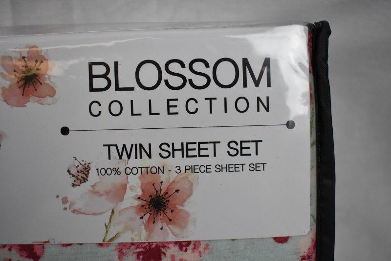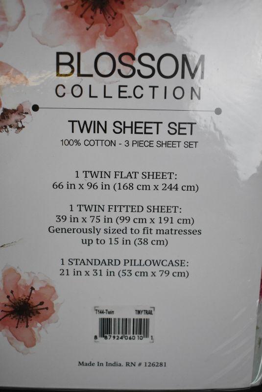 Renauraa Blossom Collection Twin Sheet Set, Floral, 3 pc 100% Cotton - New