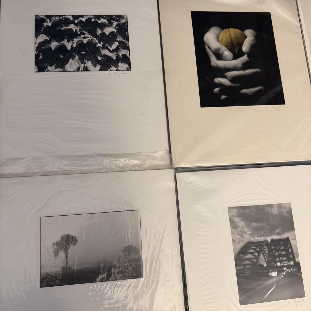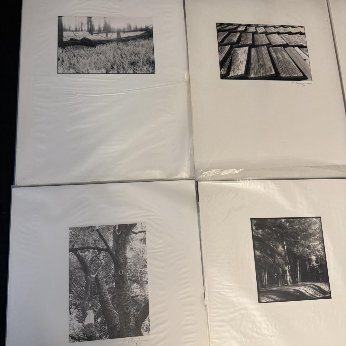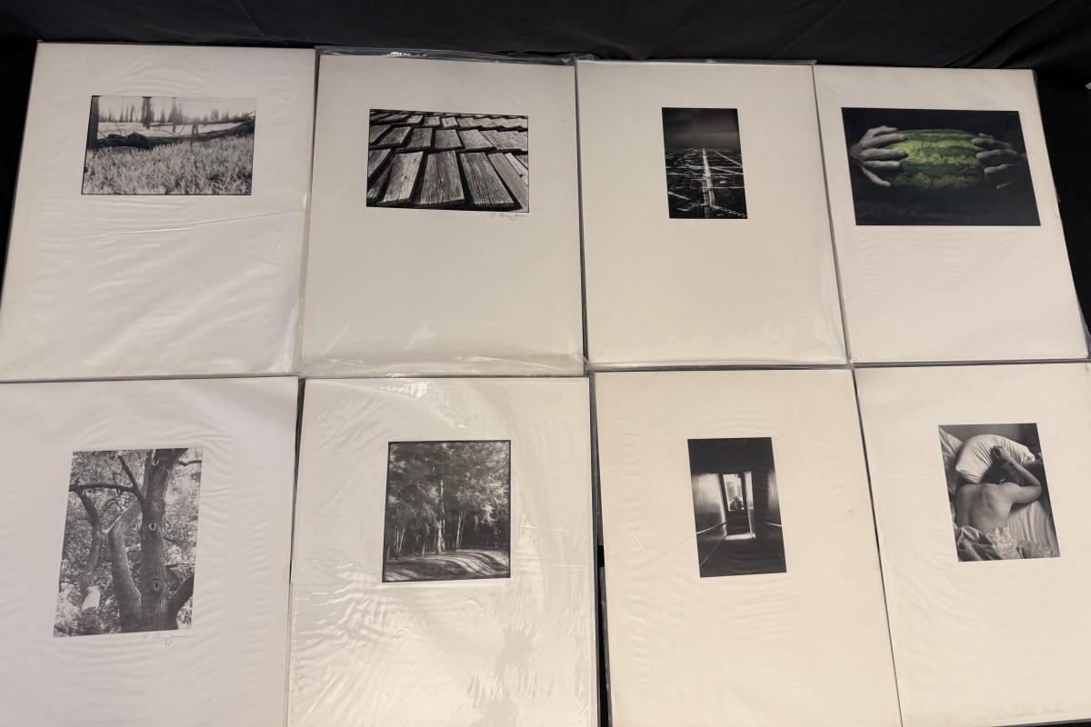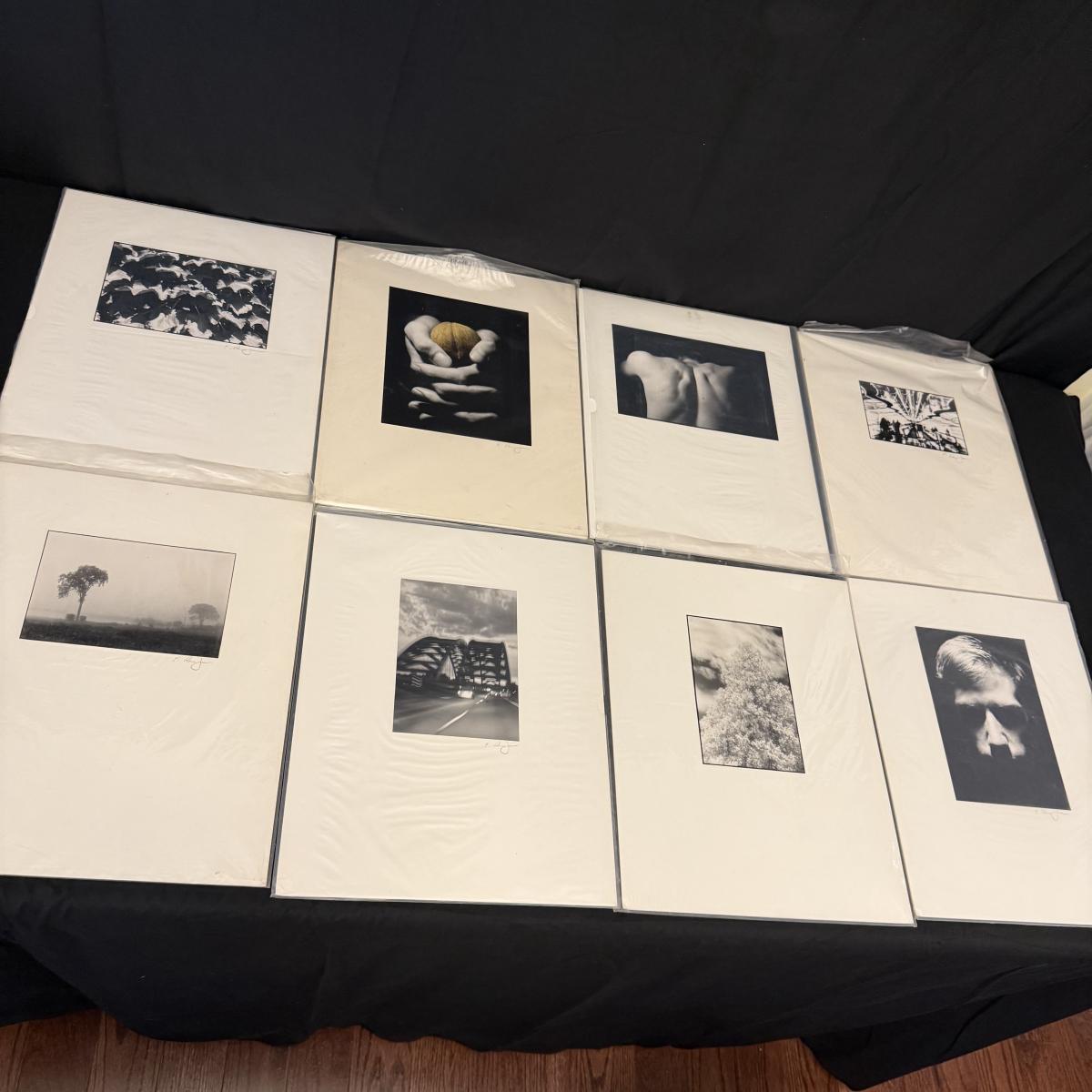 Approximately 30 photographs by Renee Jones, all mounted on mat boards. Photos are mostly black and white with a few having splashes of color. Each mat is 11 “ x 14” and the photographs vary in size. All are protected in plastic.