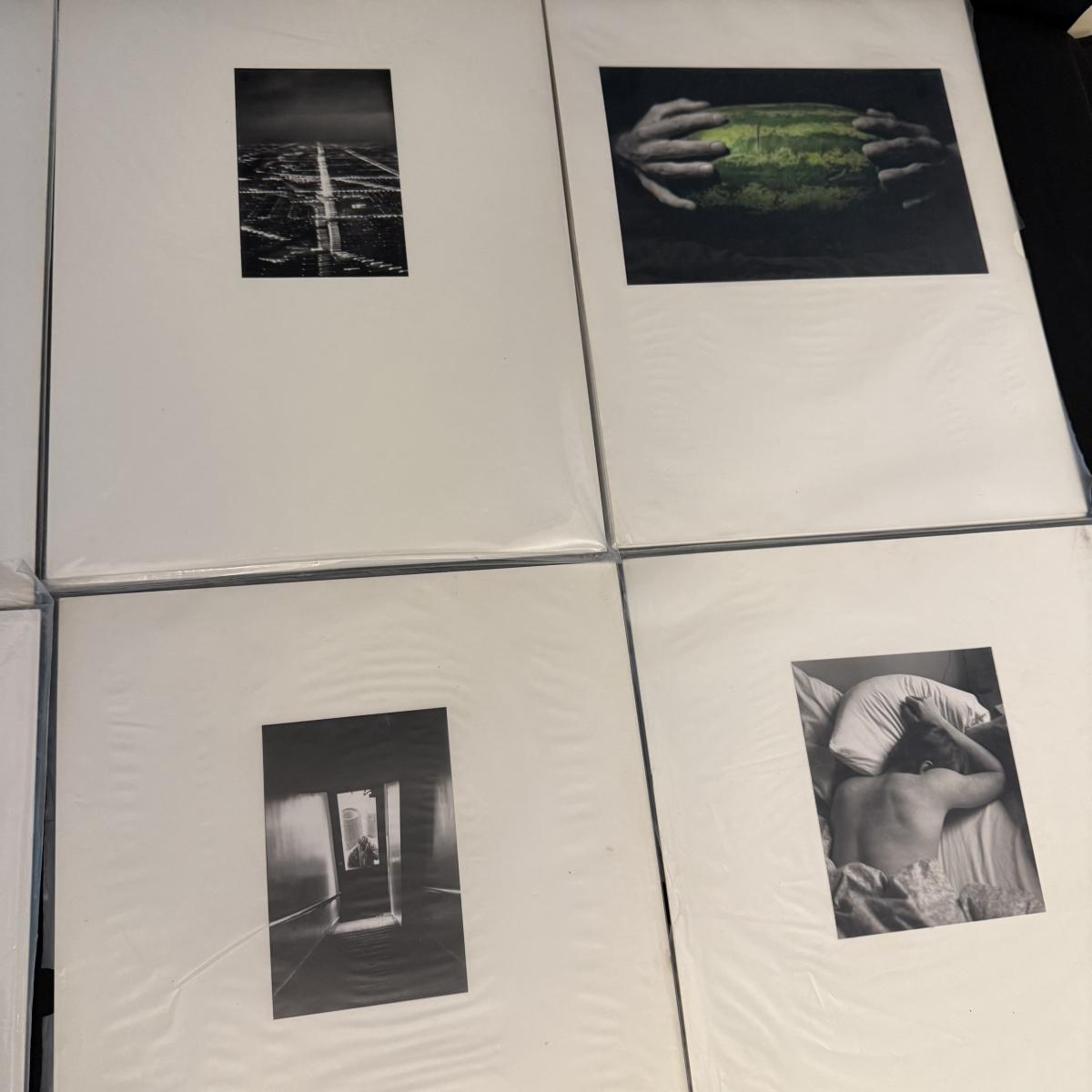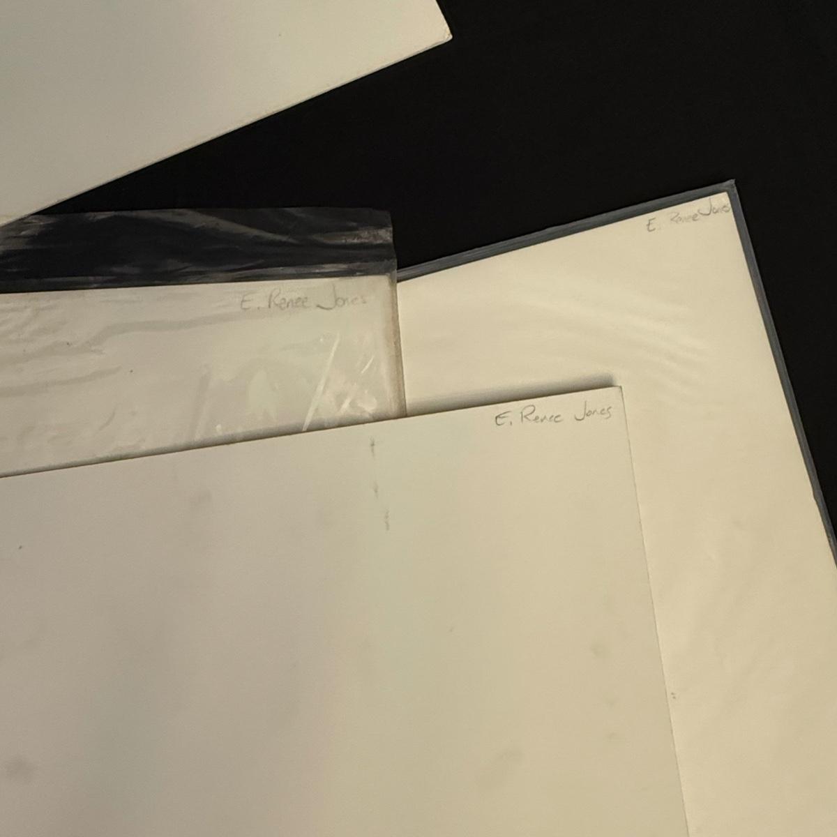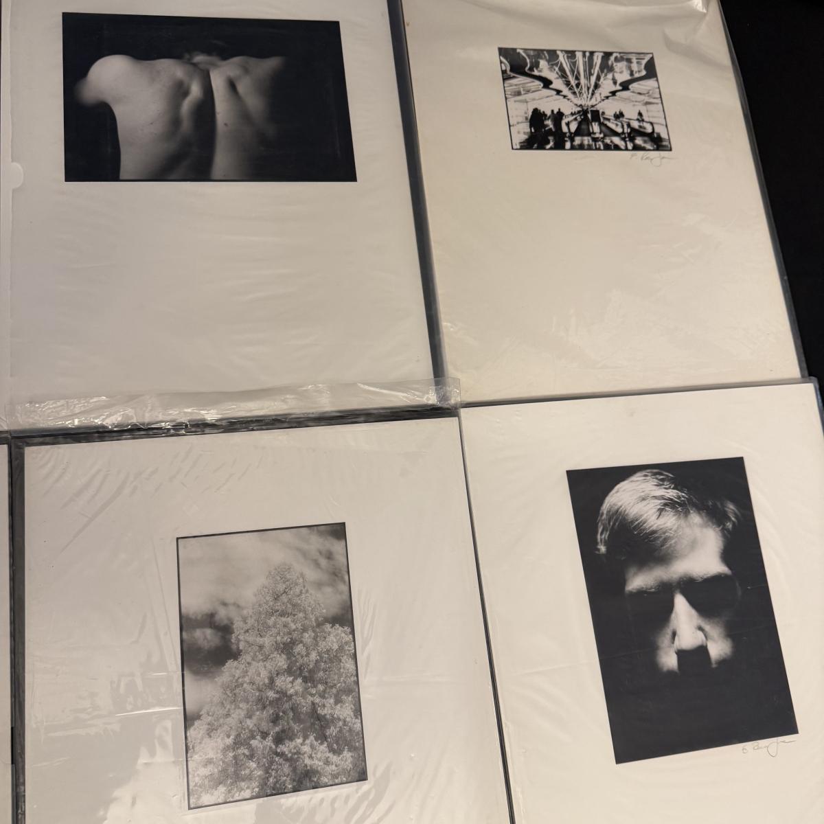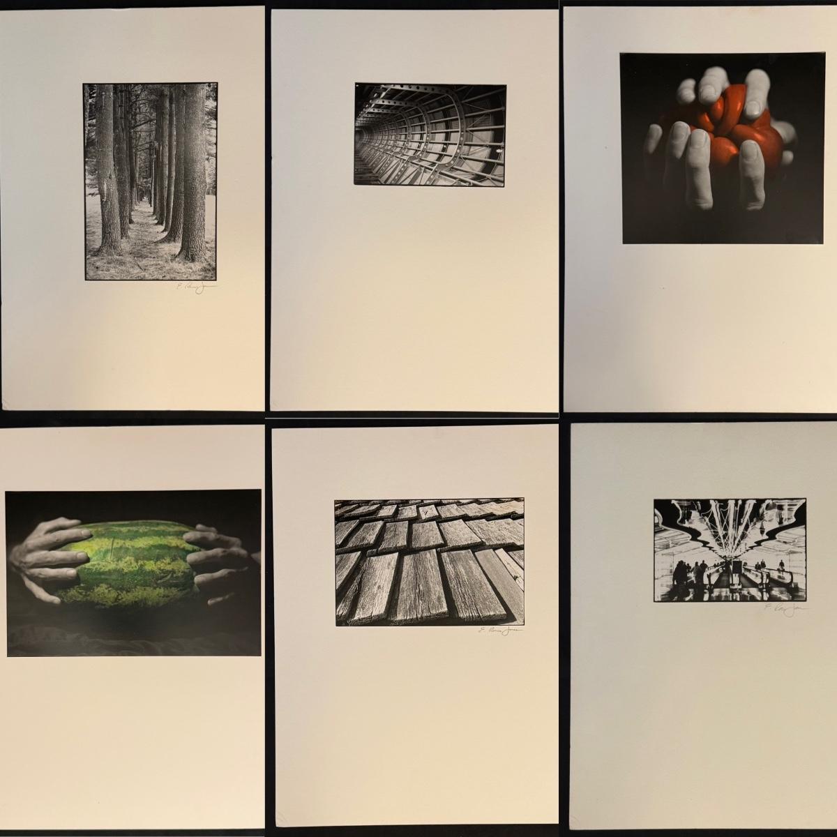 Approximately 30 photographs by Renee Jones, all mounted on mat boards. Photos are mostly black and white with a few having splashes of color. Each mat is 11 “ x 14” and the photographs vary in size. All are protected in plastic.