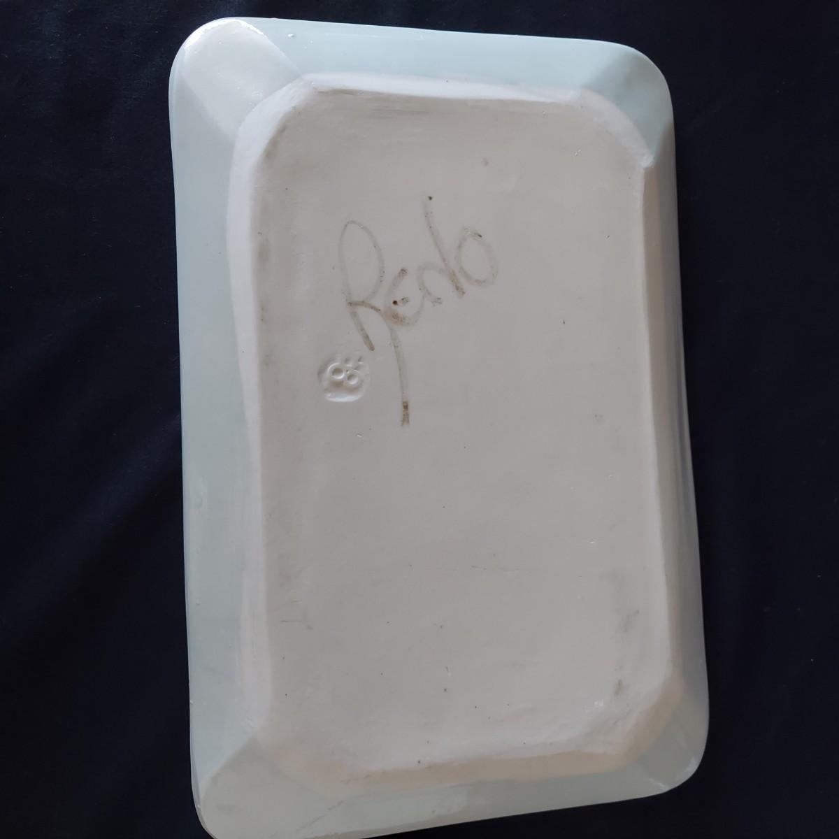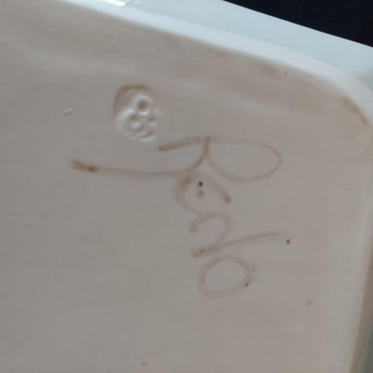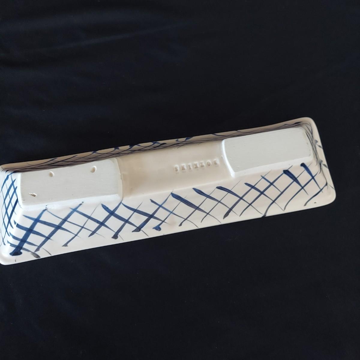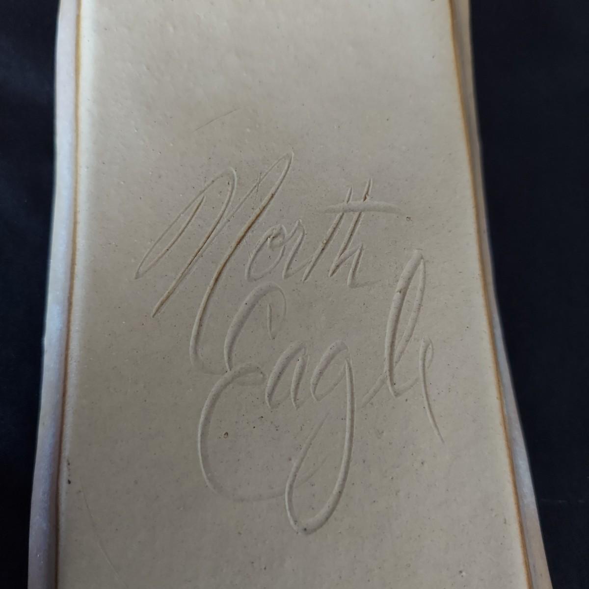 A plate and two cups that appear to be by Reno Pottery. The plate measures 10” x 7” and the cups are 2"H. Also includes a small platter/butter dish with an owl by North Eagle Pottery and a rectangular dish by Mary Kay Botkins. Please see photos for details. Plate stand is not included. Shipping available
