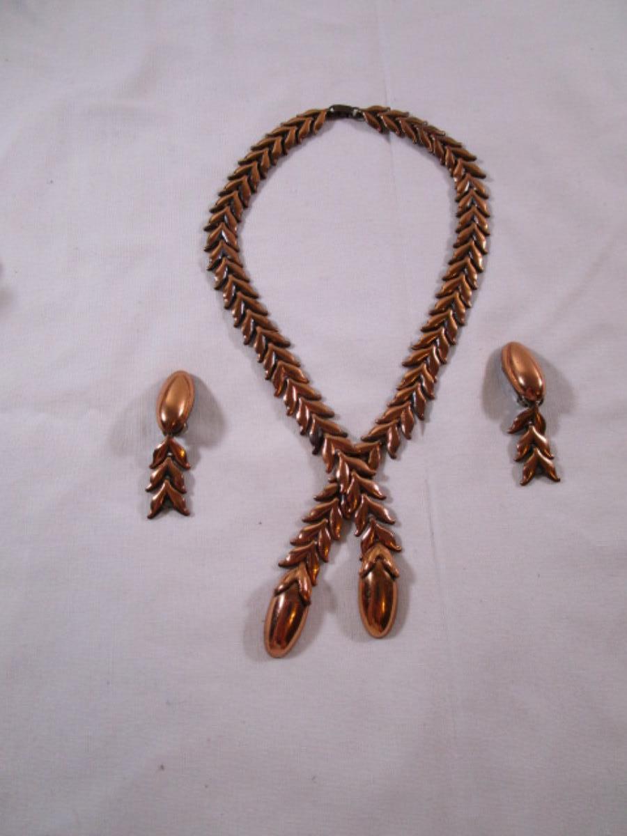 Renoir 14" Copper necklace & clip earrings
