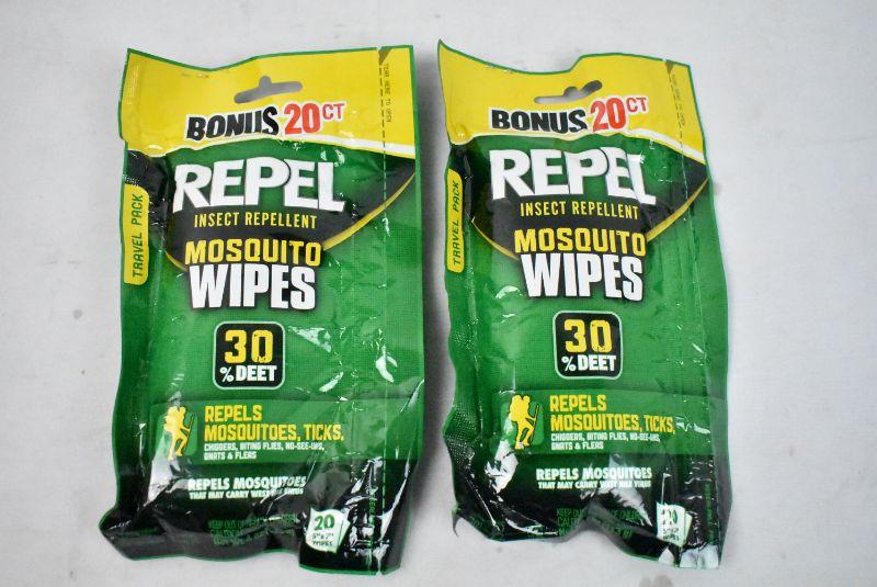 Repel Insect Repellent Mosquito Wipes, 2 packages of 20 each - New
