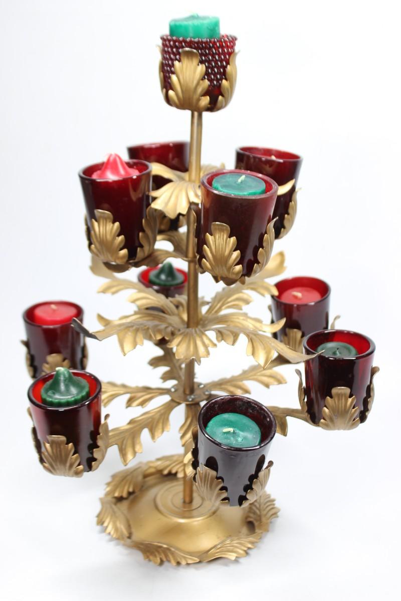 Vintage Art Deco Gold Metal Tealight Votive Tree Candle Holder Candelabra