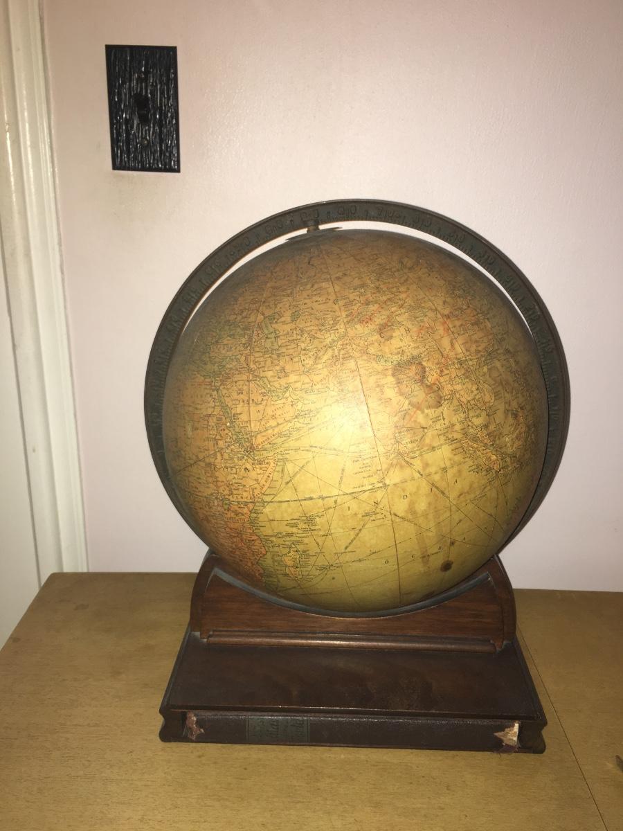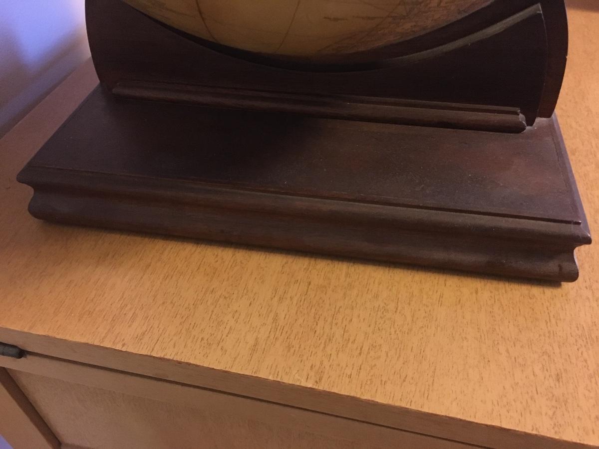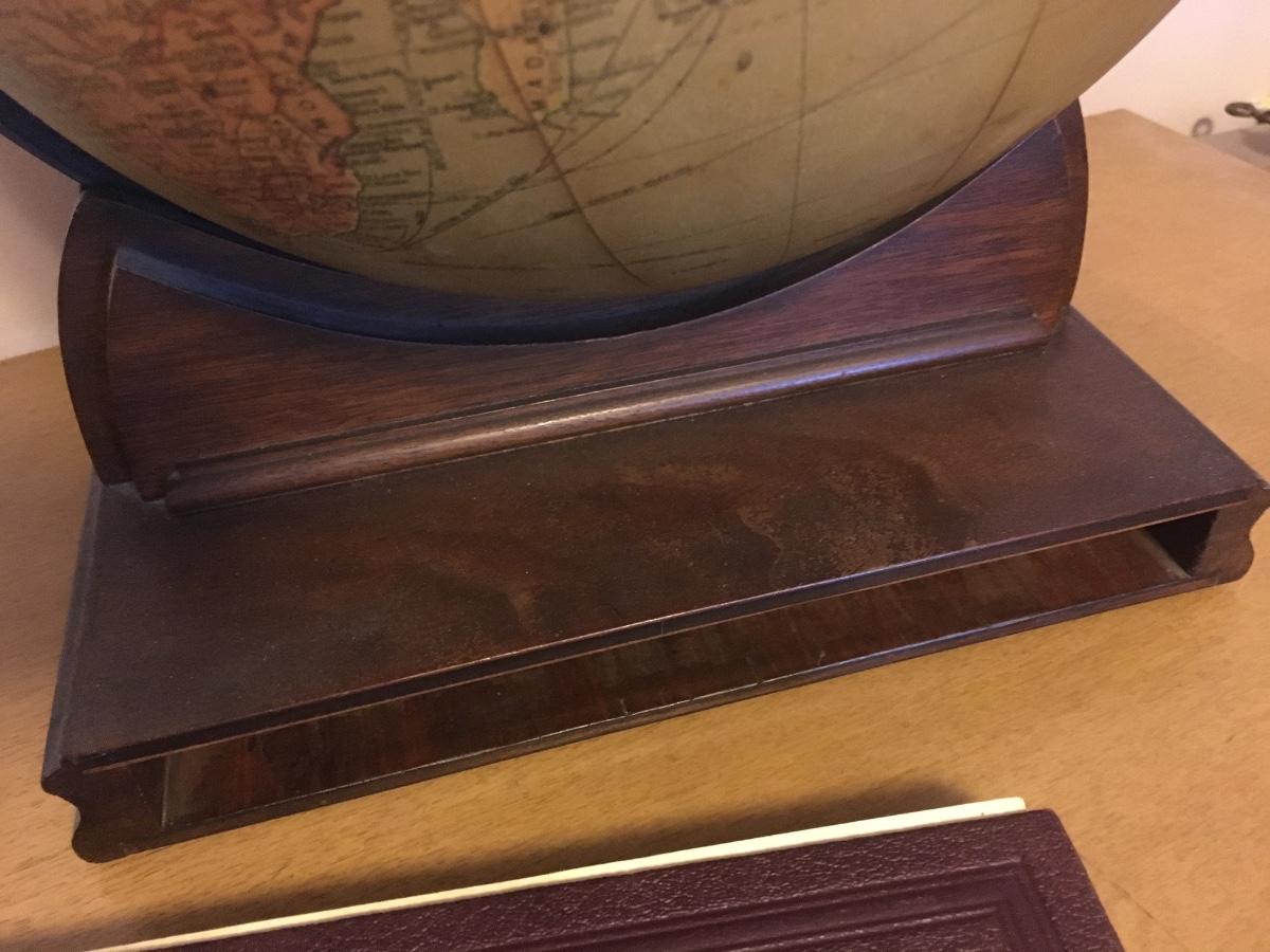 VIntage repogle 12" globe with some condition issues as shoen in phtoos. Wood base withsleeve for Atlas printed in 1936