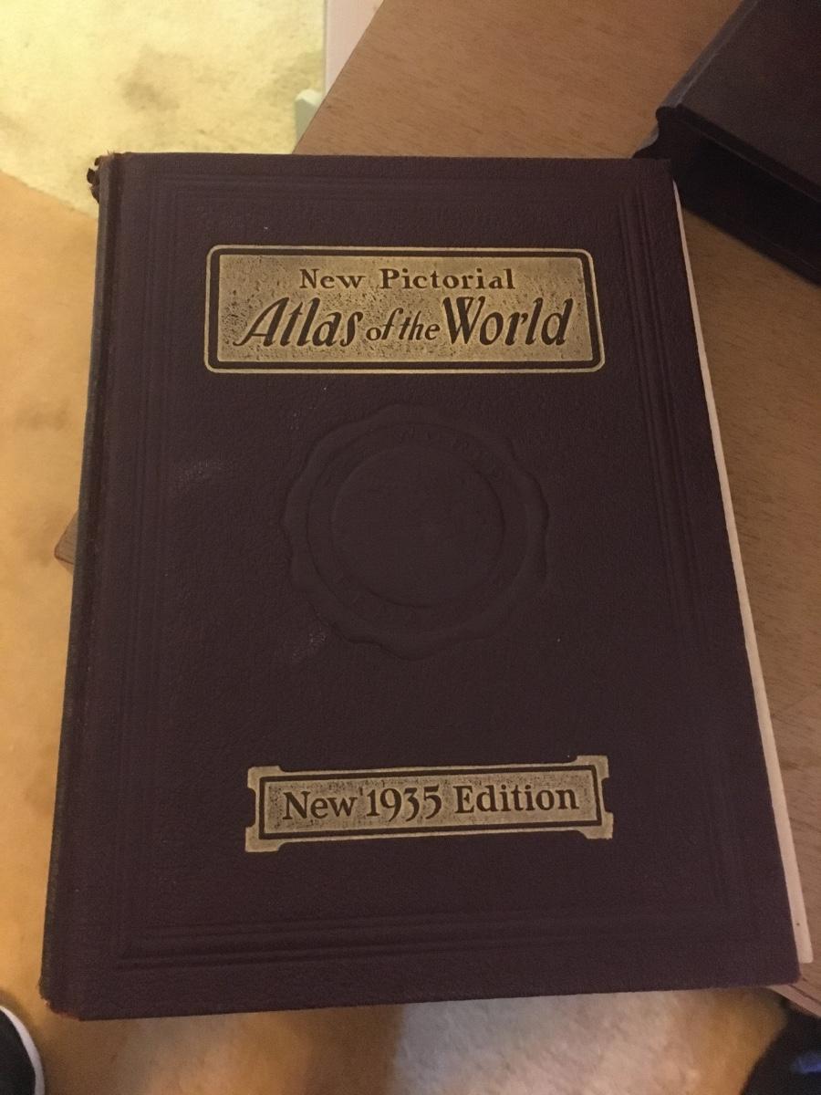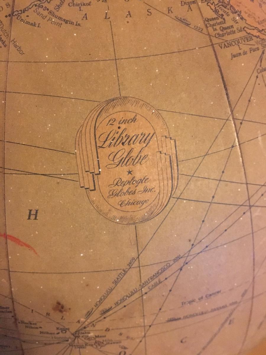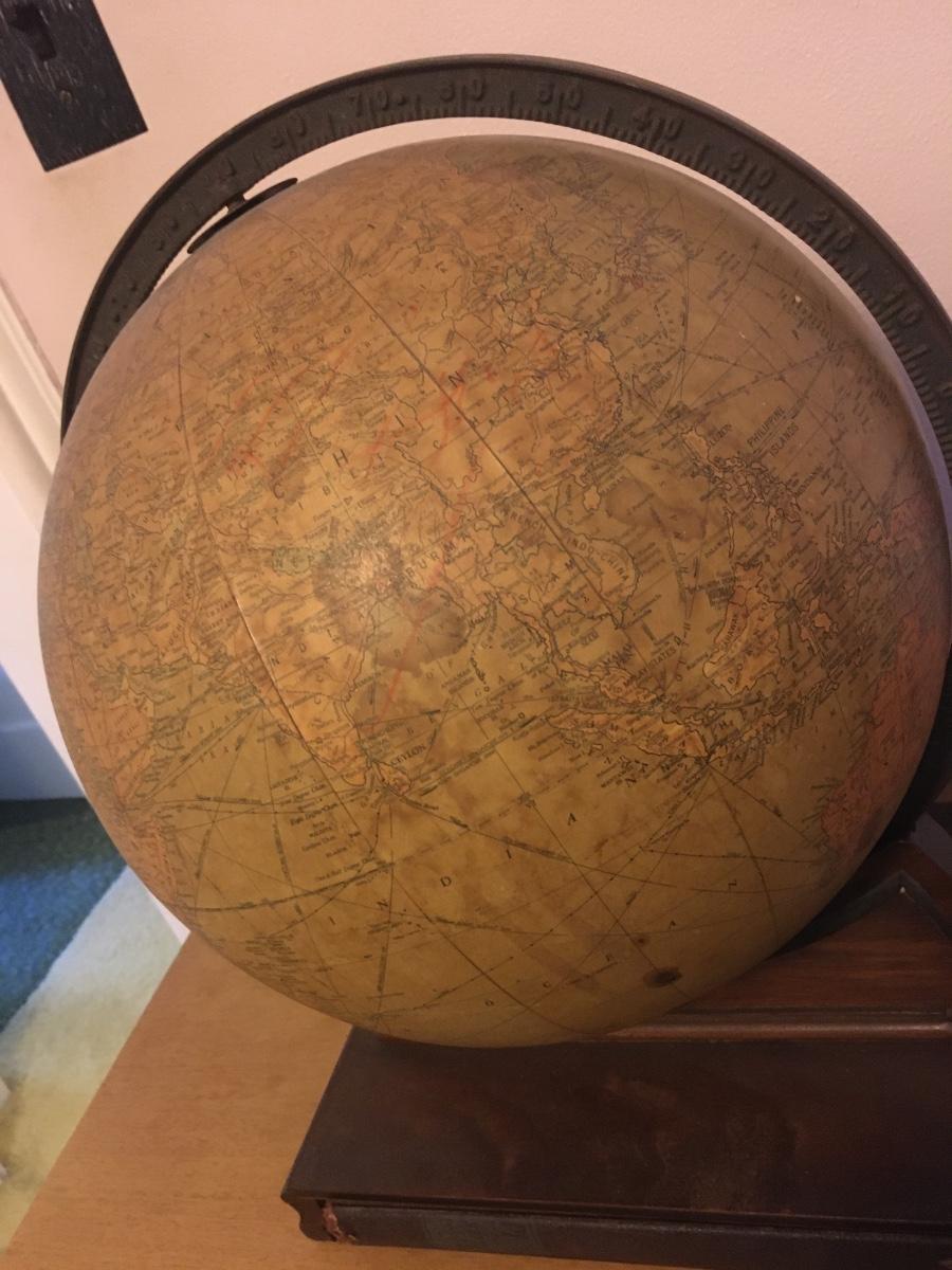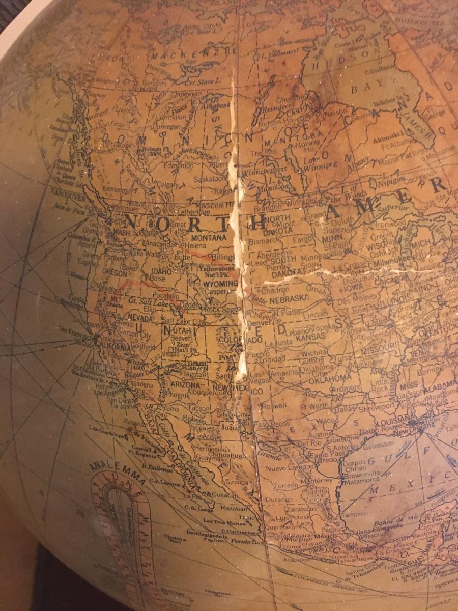VIntage repogle 12" globe with some condition issues as shoen in phtoos. Wood base withsleeve for Atlas printed in 1936