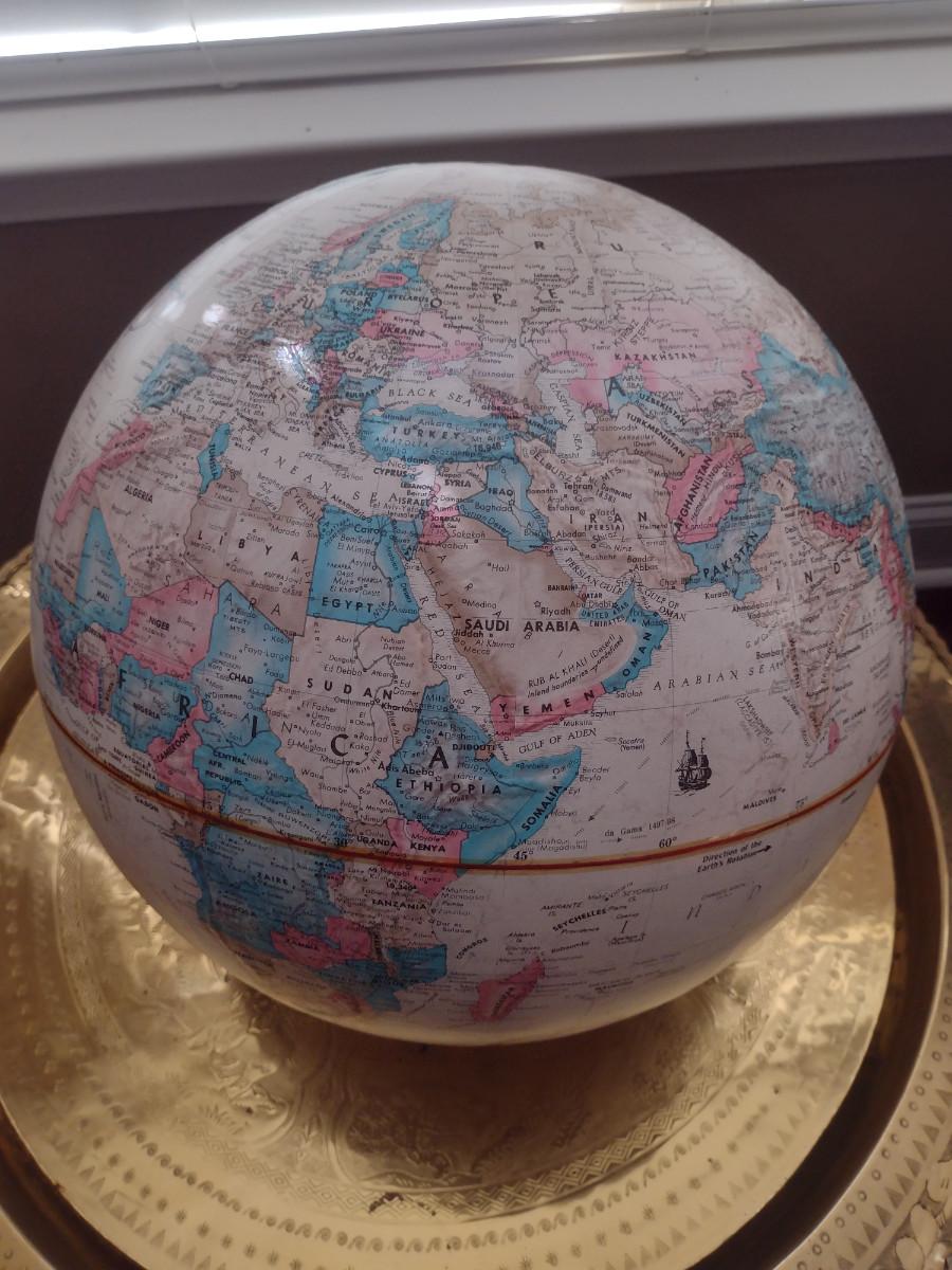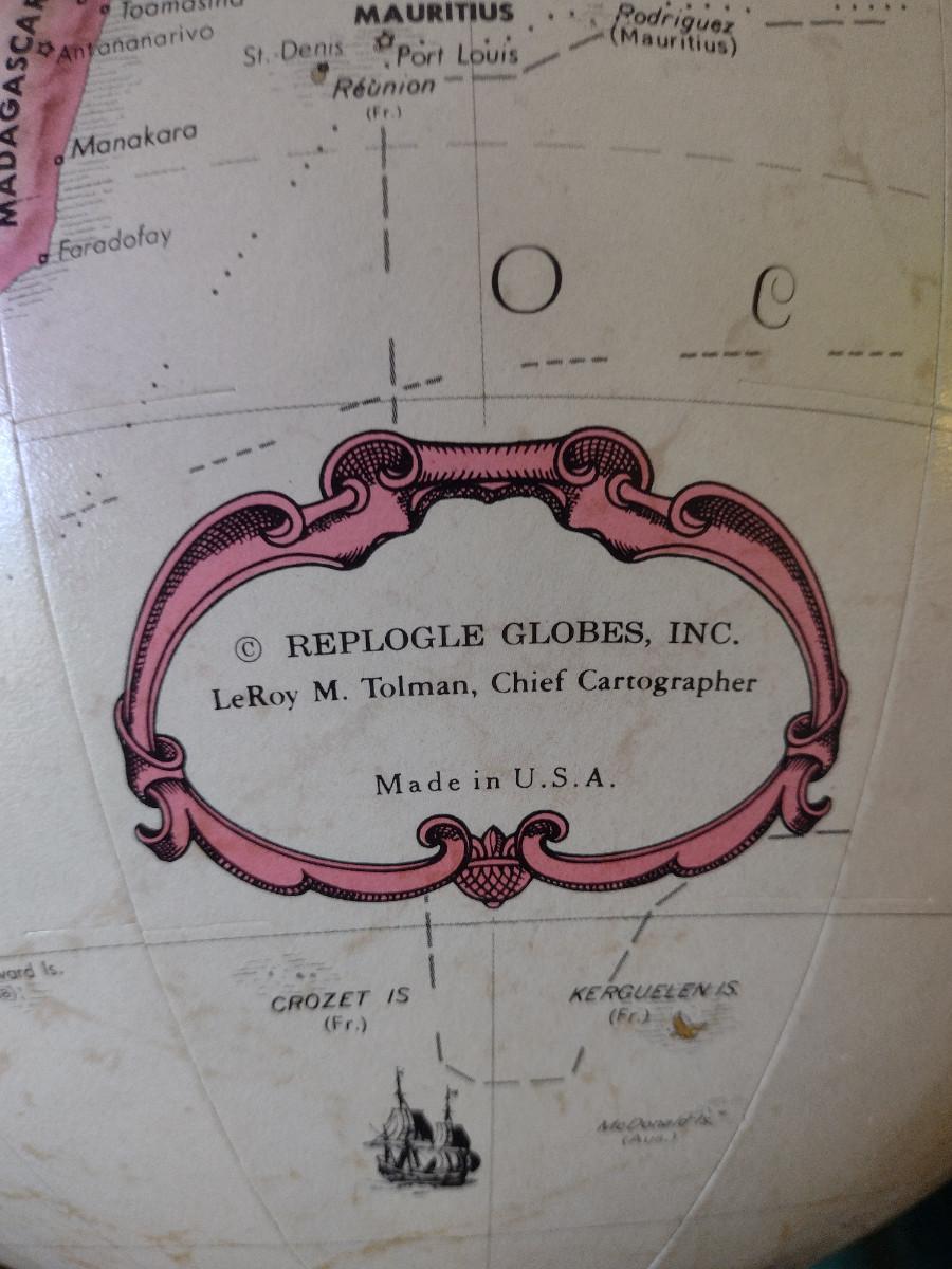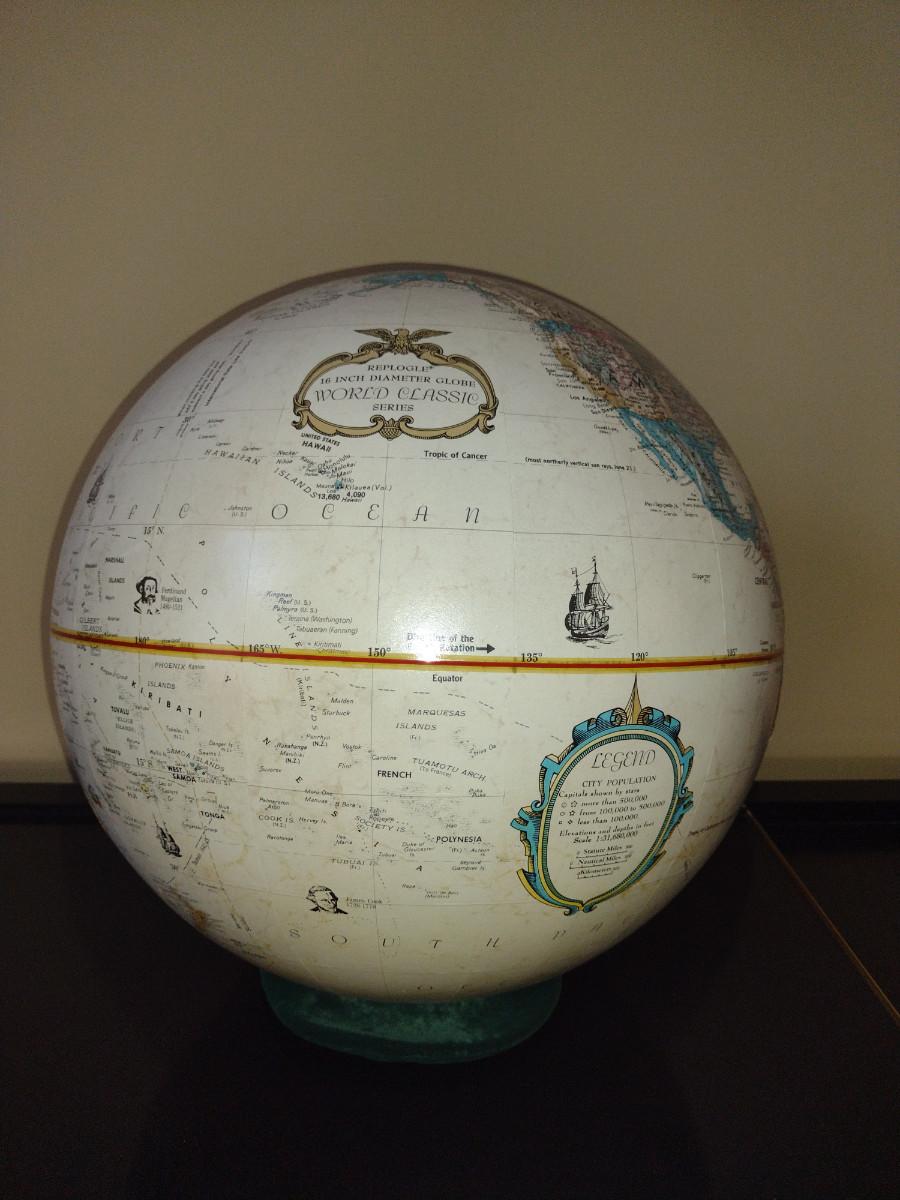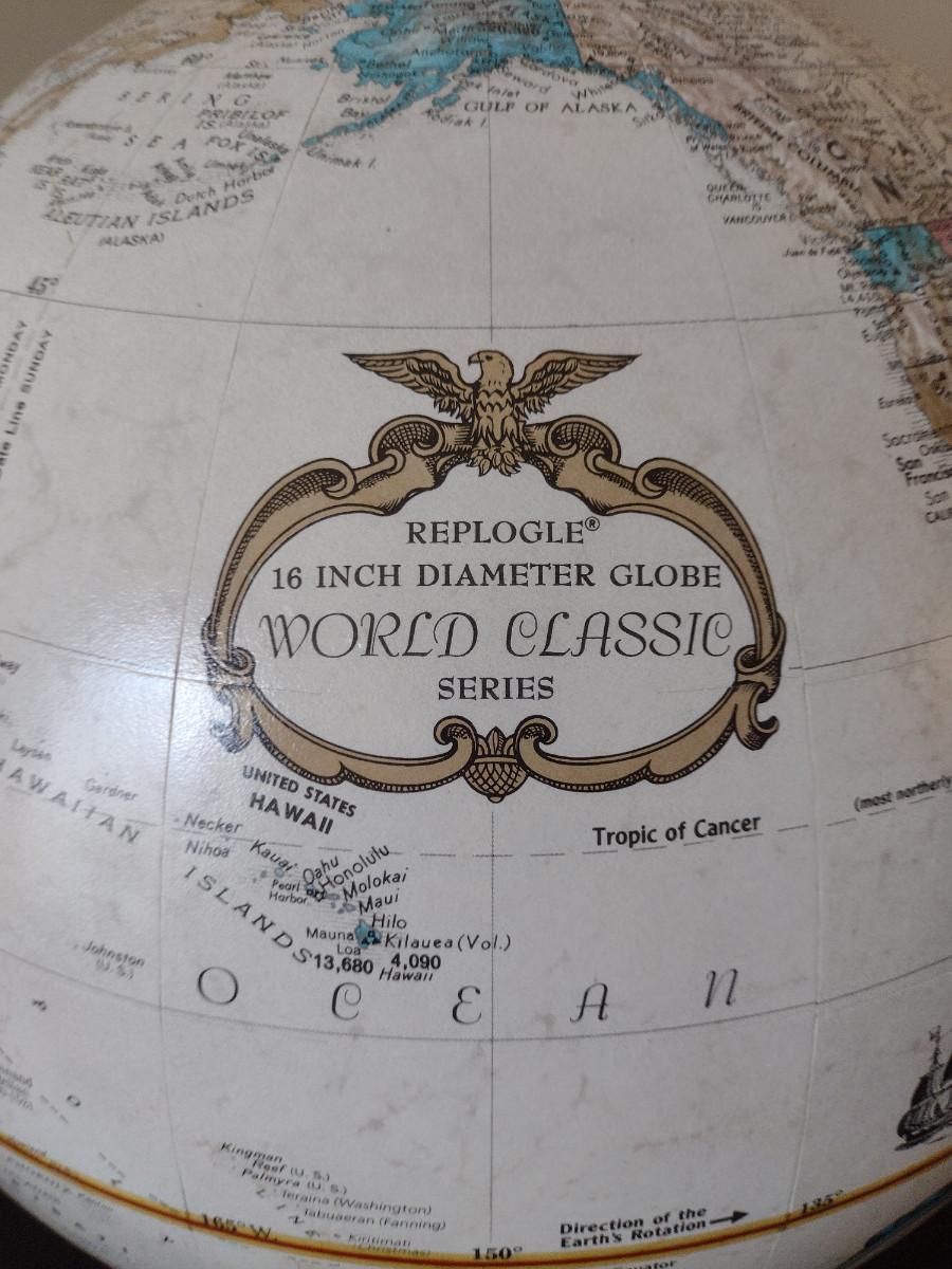 Replogle 16 Inch Diameter World Classic Series Globe. No stand, but cushion is included for base. Circle of lions (separate item also listed in this sale) would be perfect base for this globe.