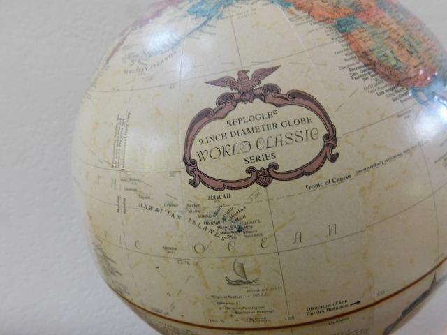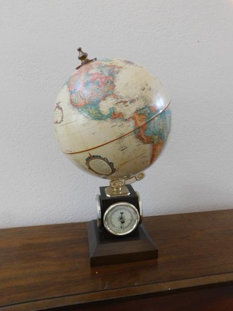 Desktop Repogle 9" World Globe on Stand with Rotating Thermometer and Barometer Gauges may need tightening