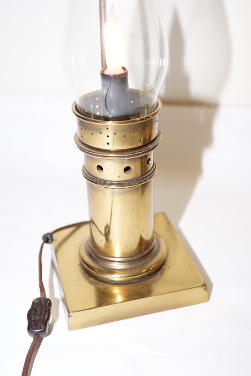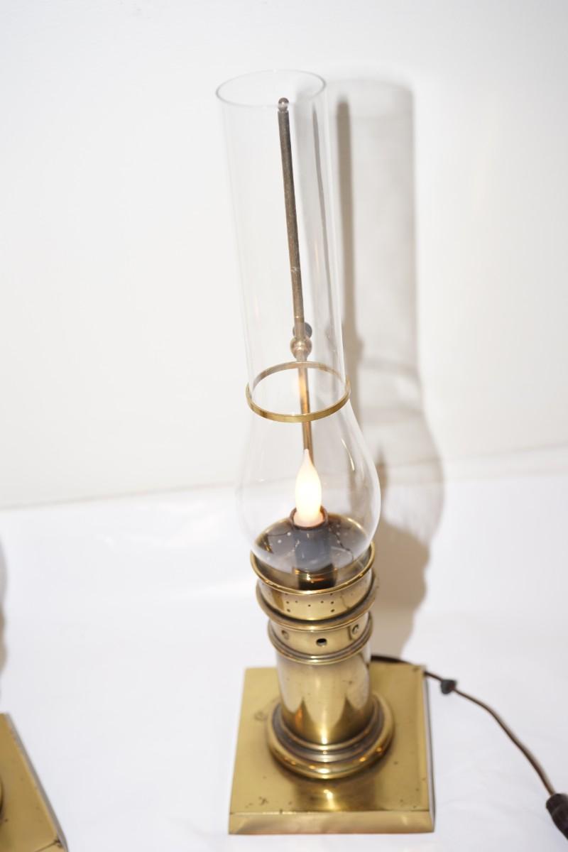 REPRODUCTION ARGAND STYLE LAMPS W/ CHIMNEYS AND FLAME BULBS - VERY PRIMITIVE