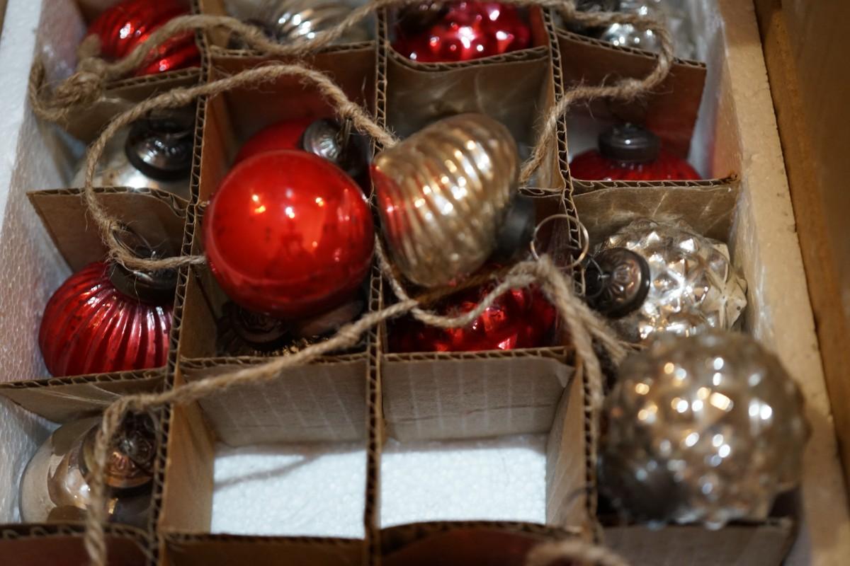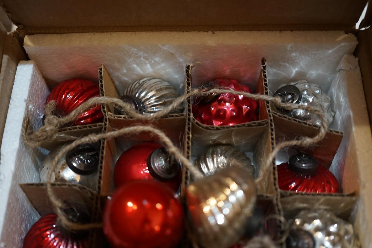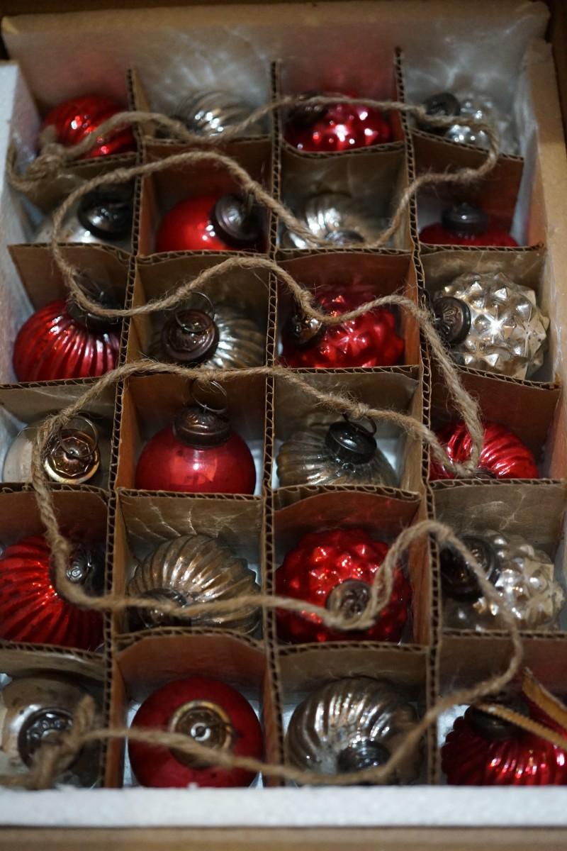 REPRODUCTION KUGEL STYLE 2" ORNAMENTS IN RED AND SILVER