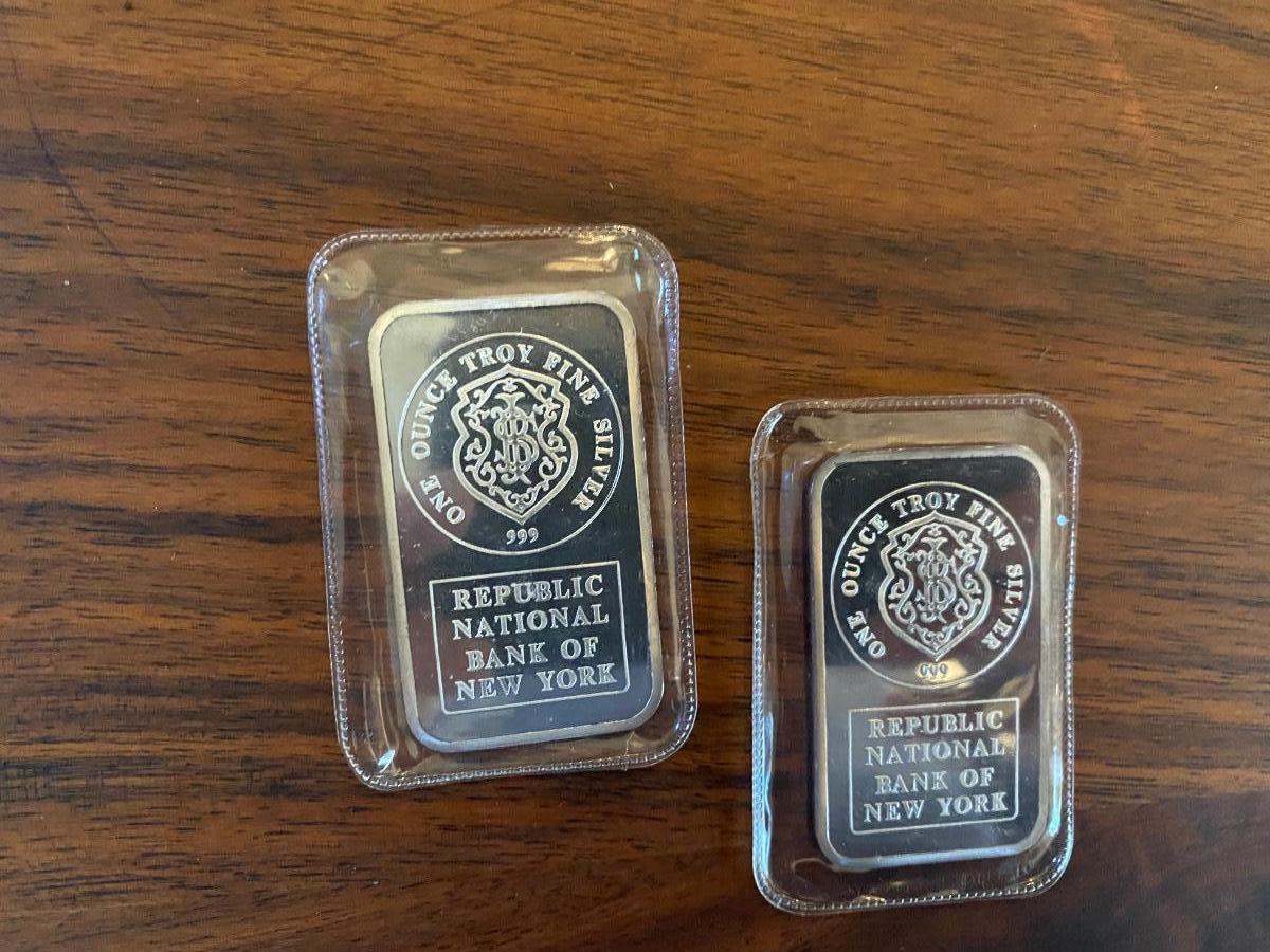 Republic National Bank of New York Silver Bar Lot QTY 2, .999 Silver