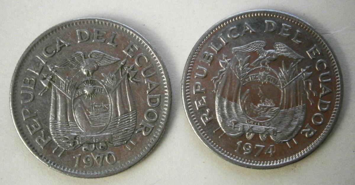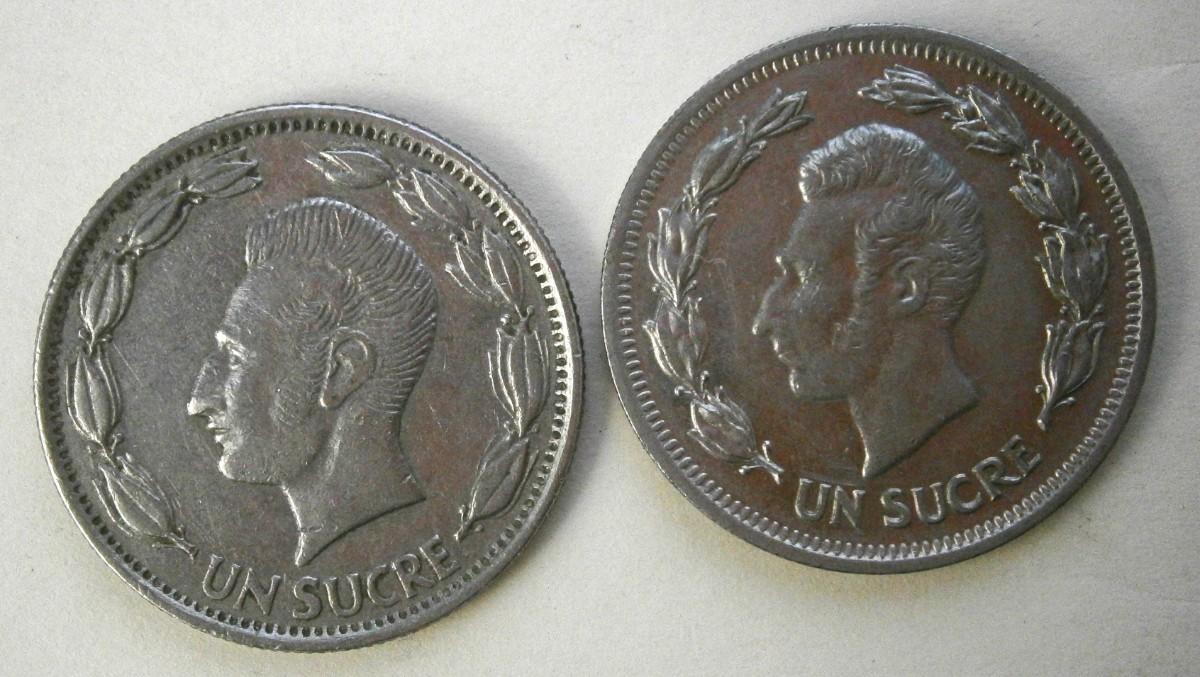 REPUBLICA DEL ECUADOR 1970 & 1974 UN SUCRE Coins.