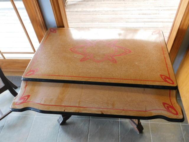 Repurposed Eastlake Walnut Base with Vintage Enamel Slide Out Table Top 40"x25"x31"