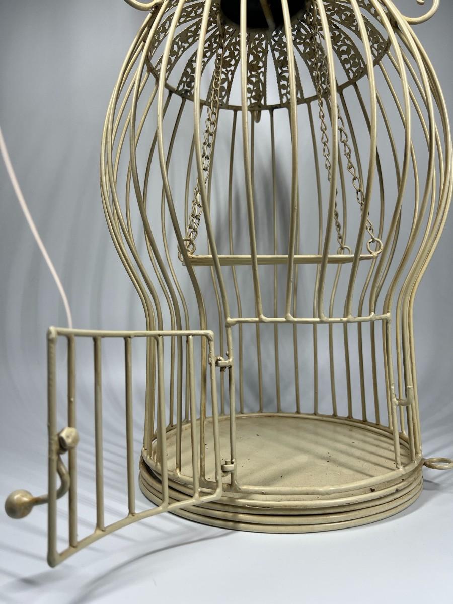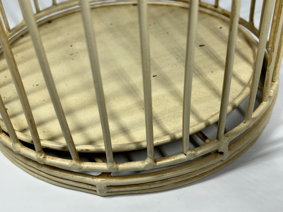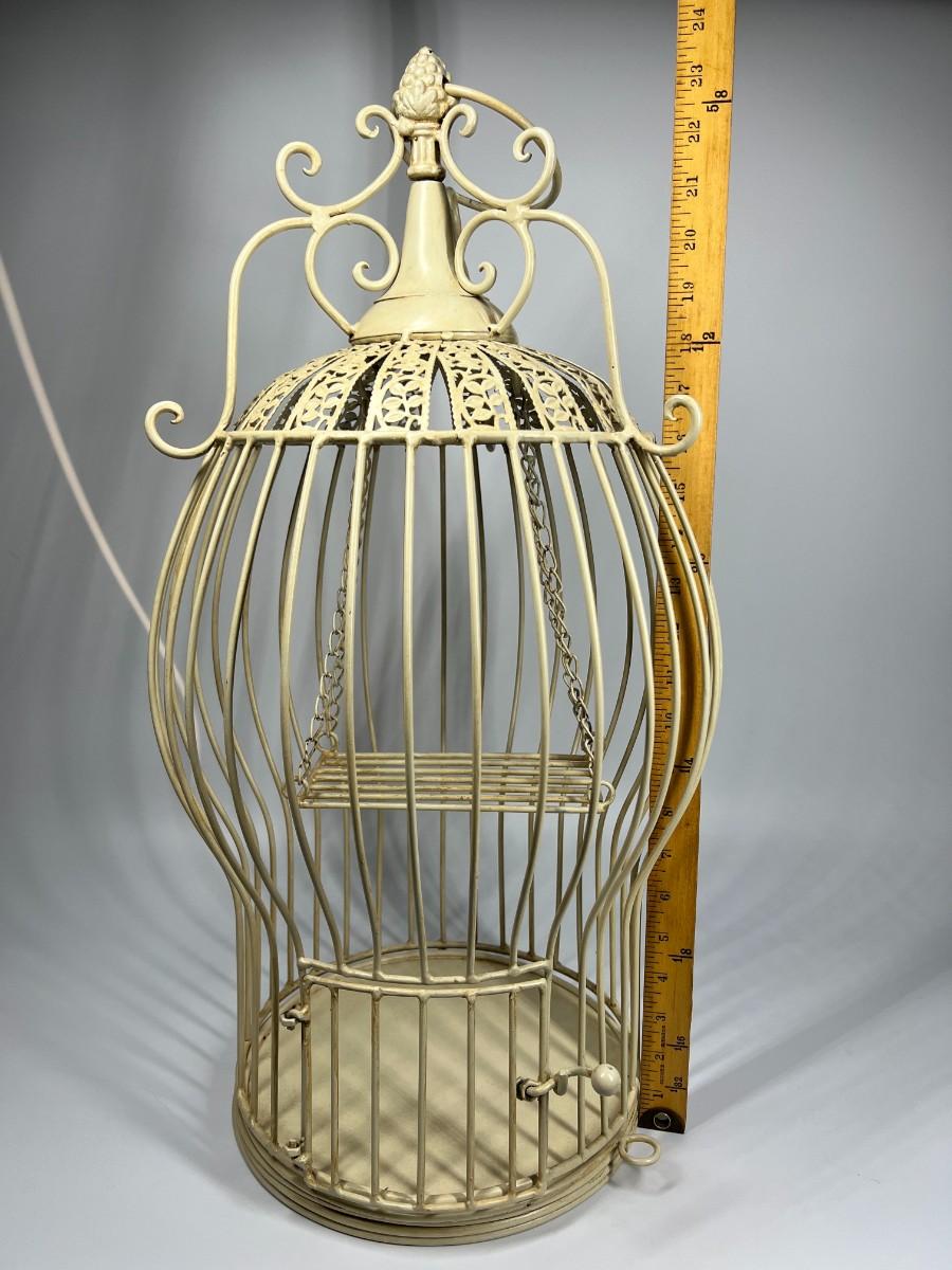 Metal Cream Color Home Decor Bird Animal Cage, there is some minor wear, but there is no significant damage to the cage and is in good displayable condition. Check pictures for more details and for sizing.