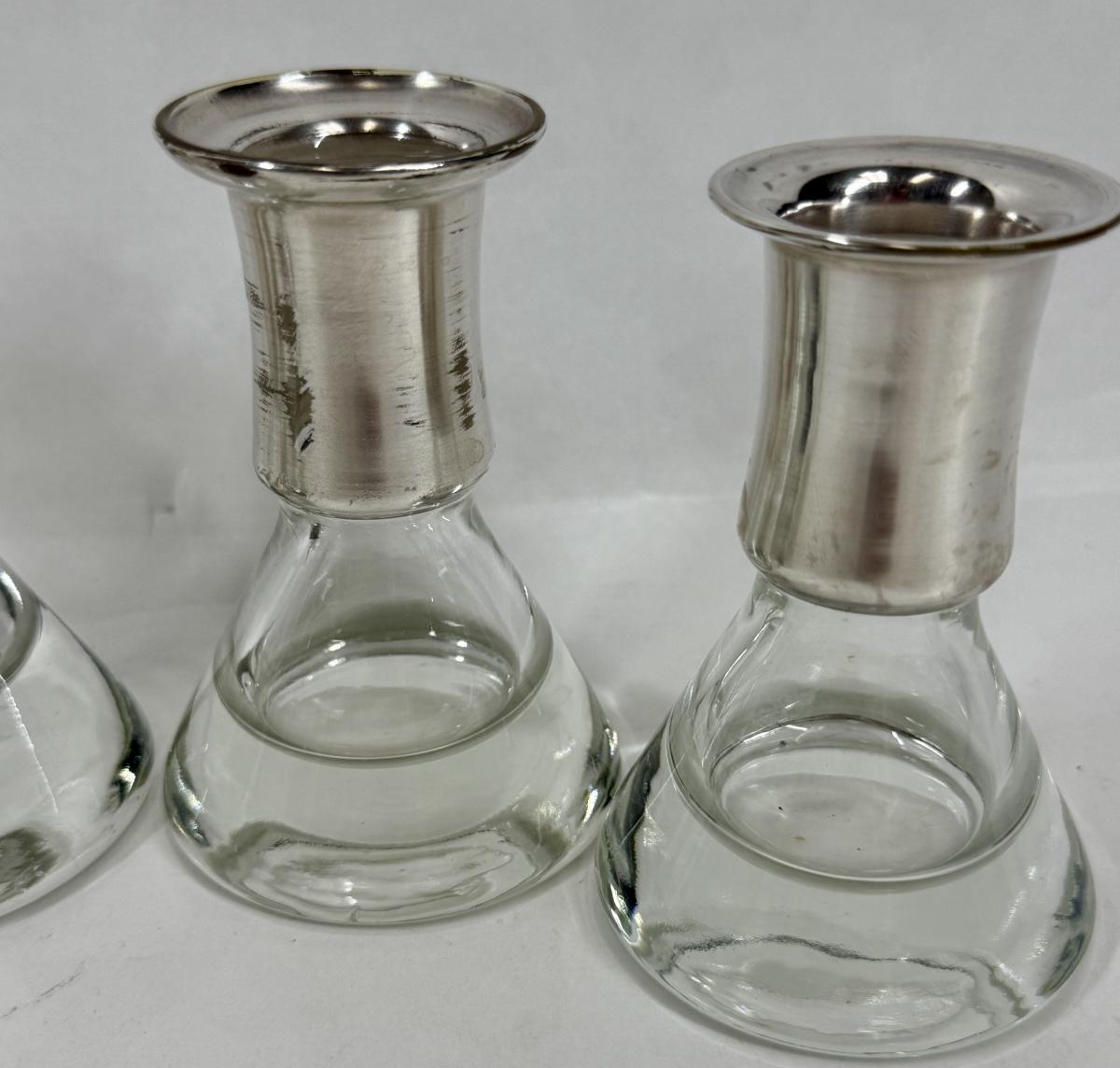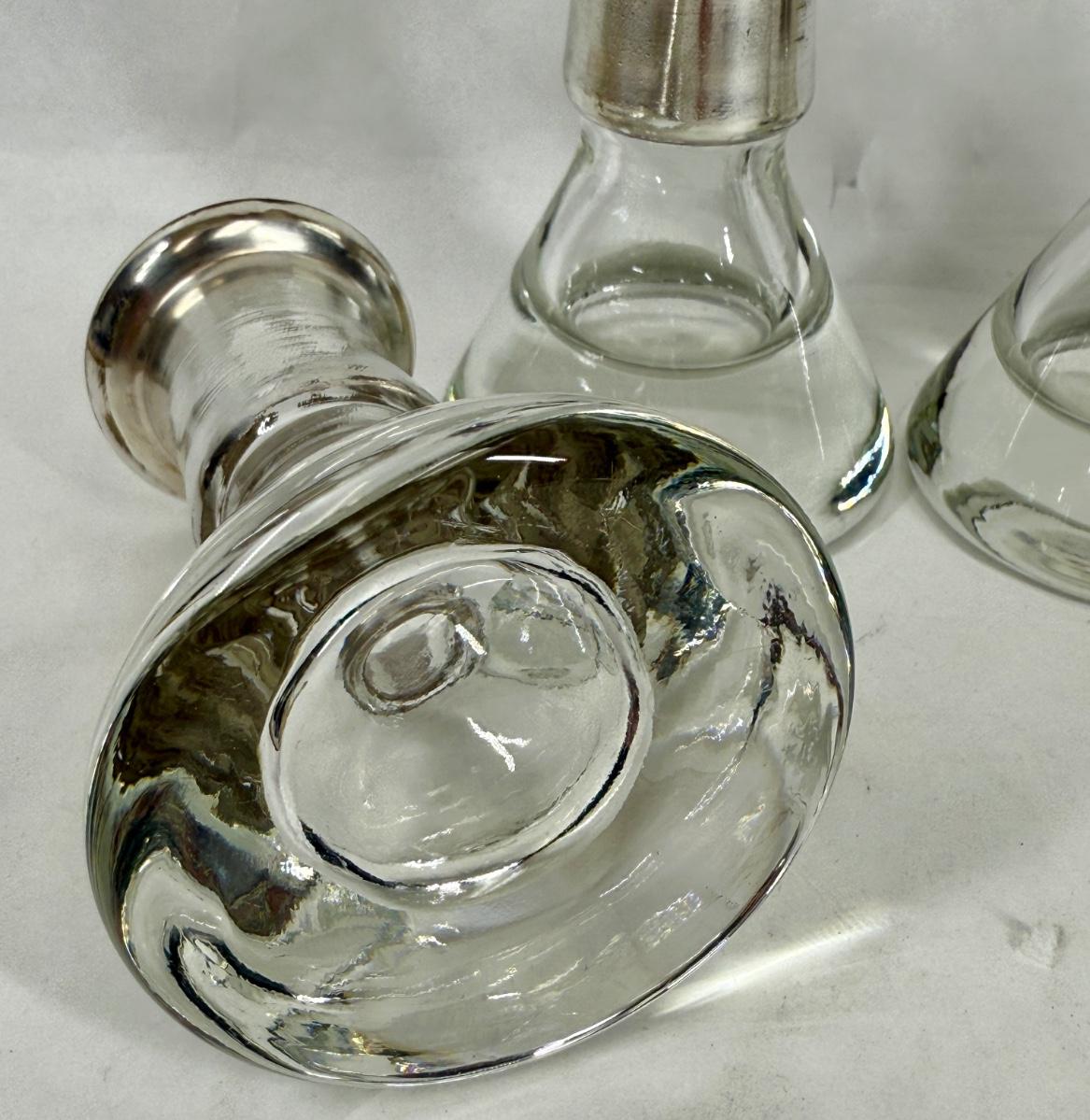 Kosta Boda Silver and Clear Candle Holders