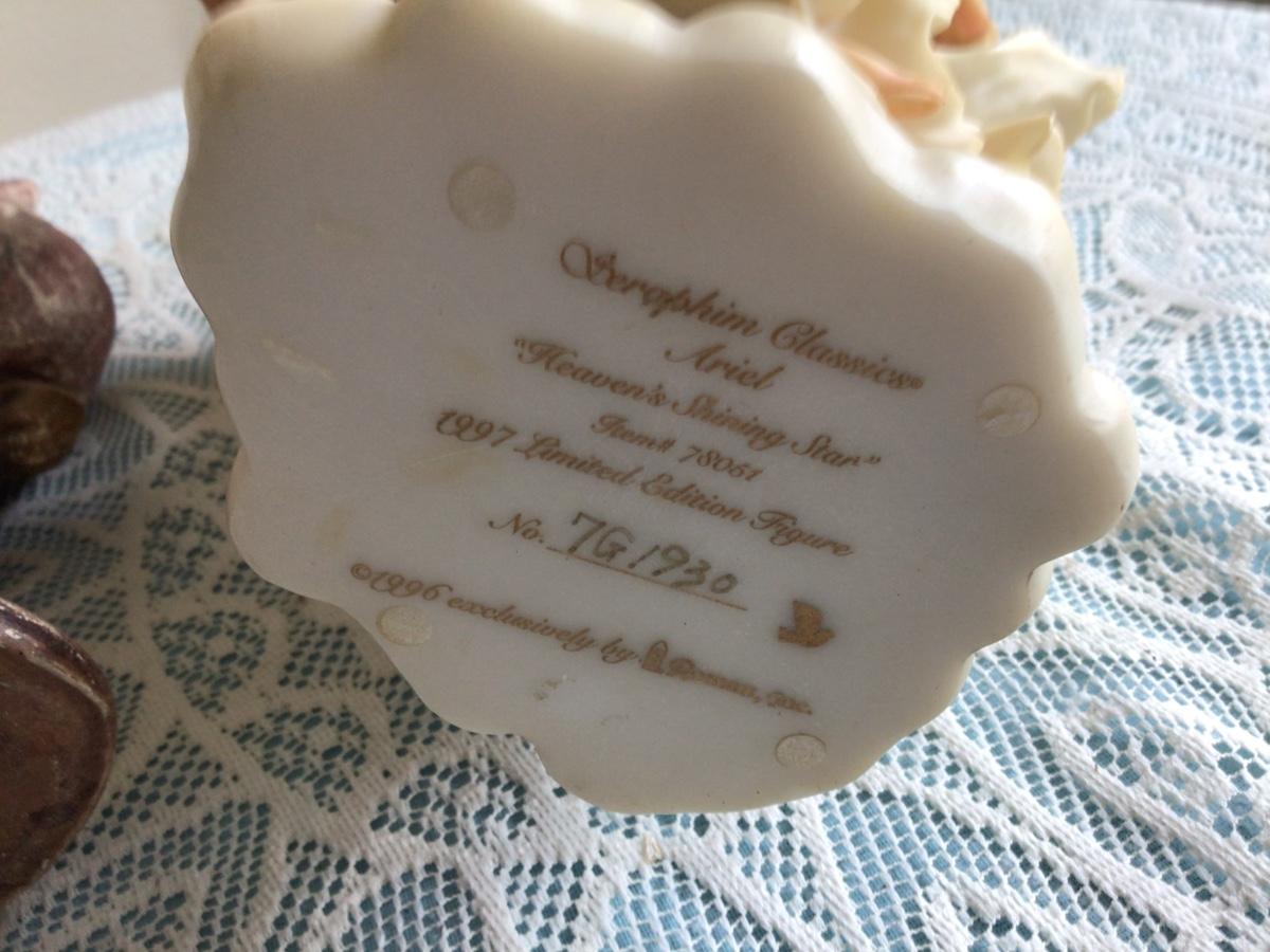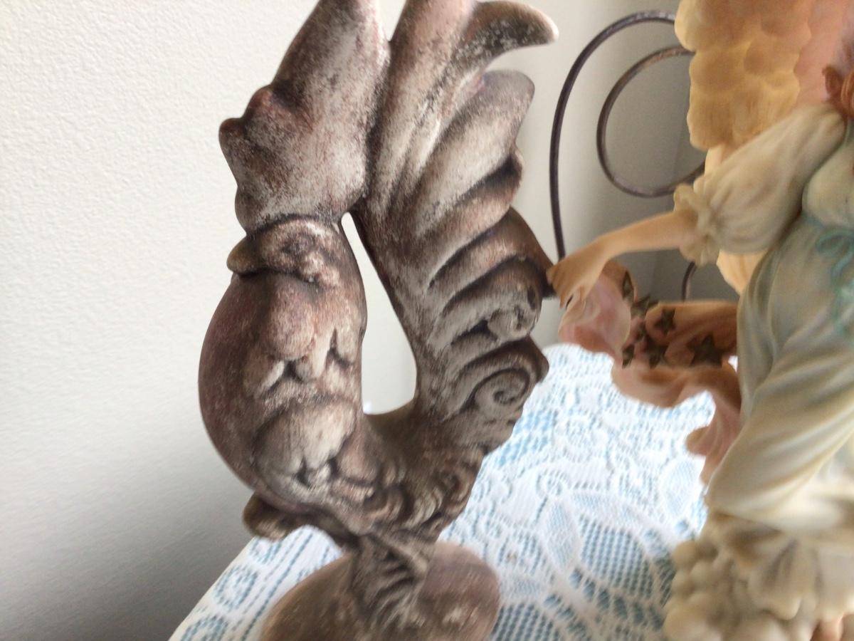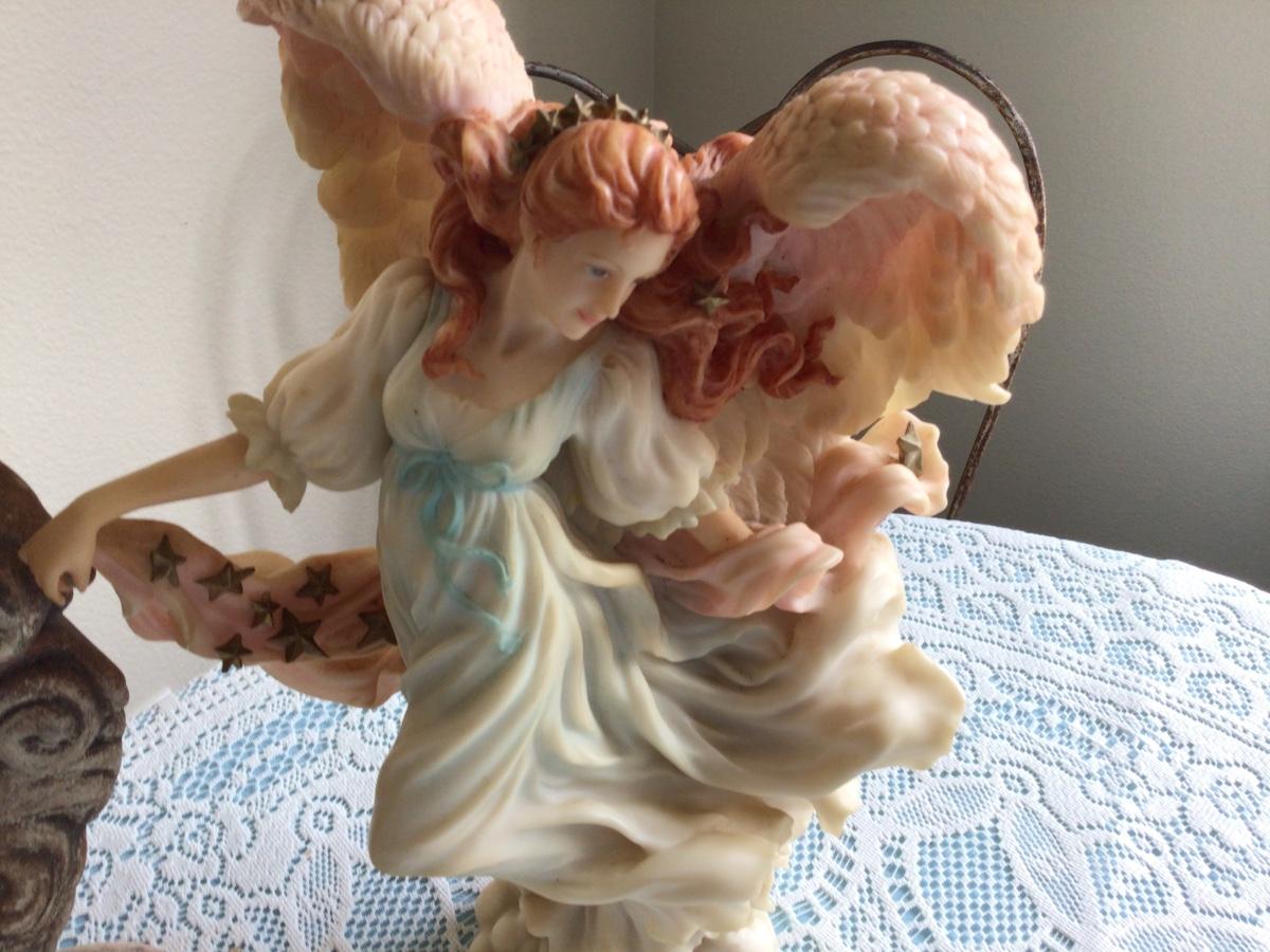 You get two great items. A resign Angel in great shape and a pottery rooster also in great condition.