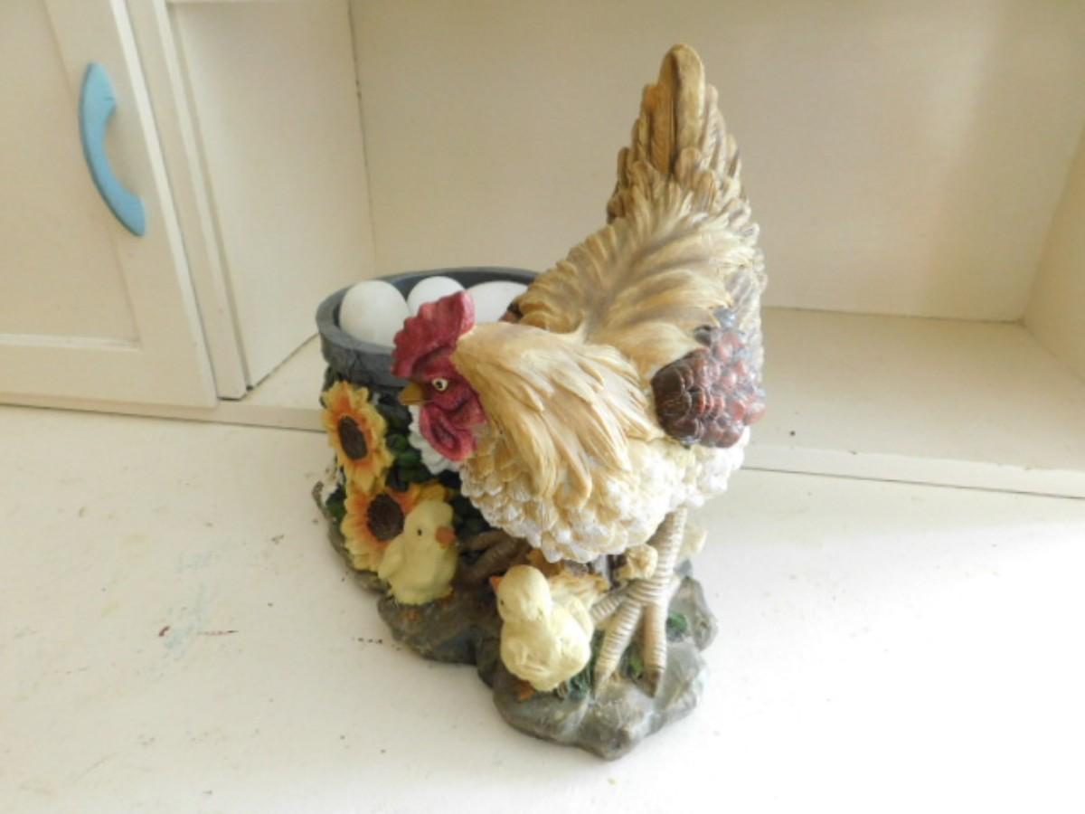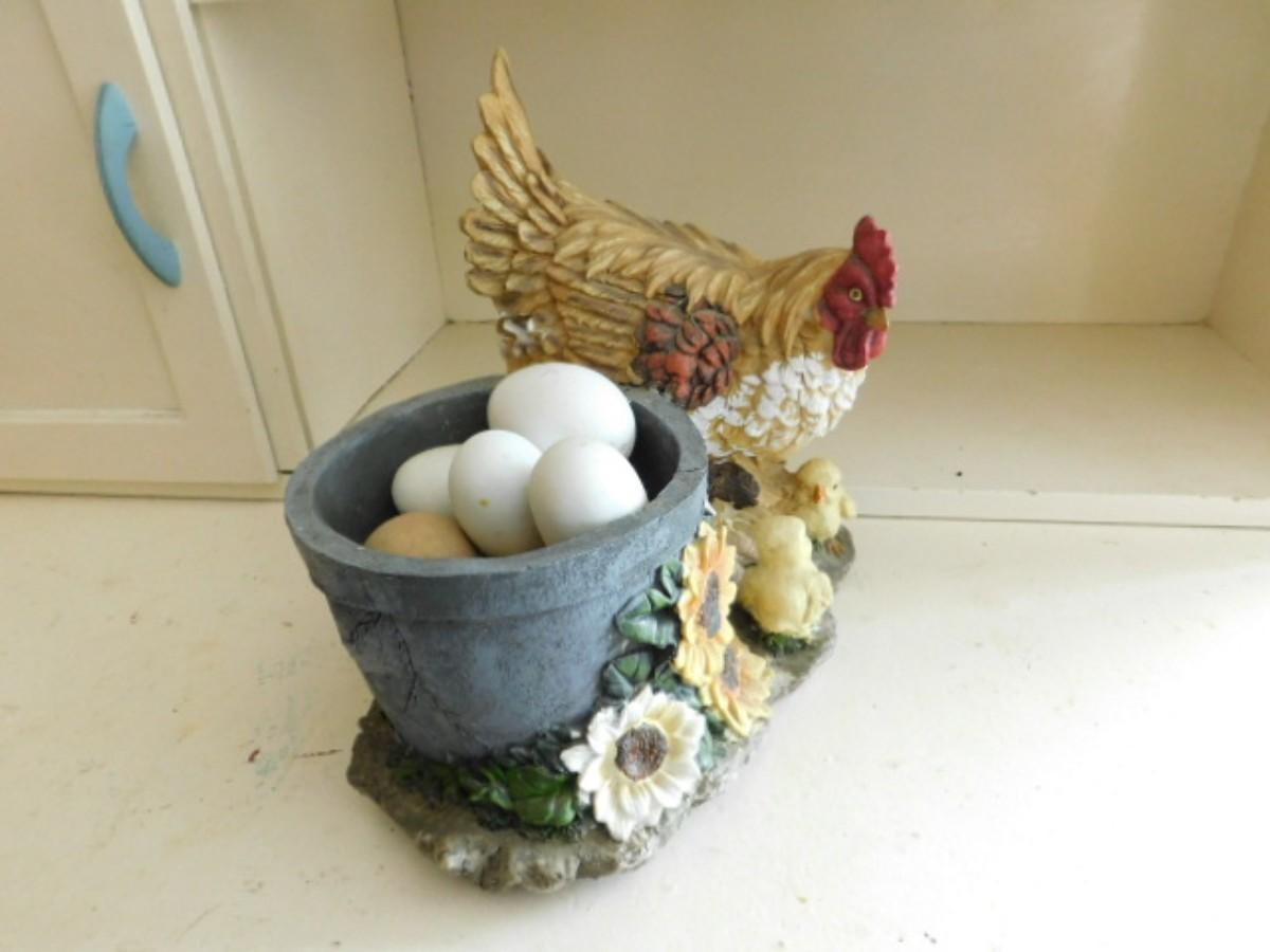 Resin Hed with Chicks Around Flowerpot includes Wooden Eggs