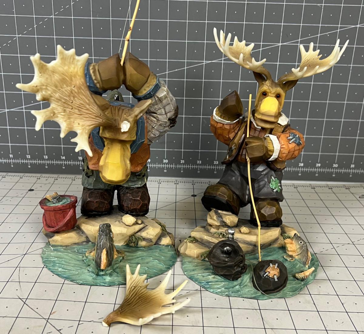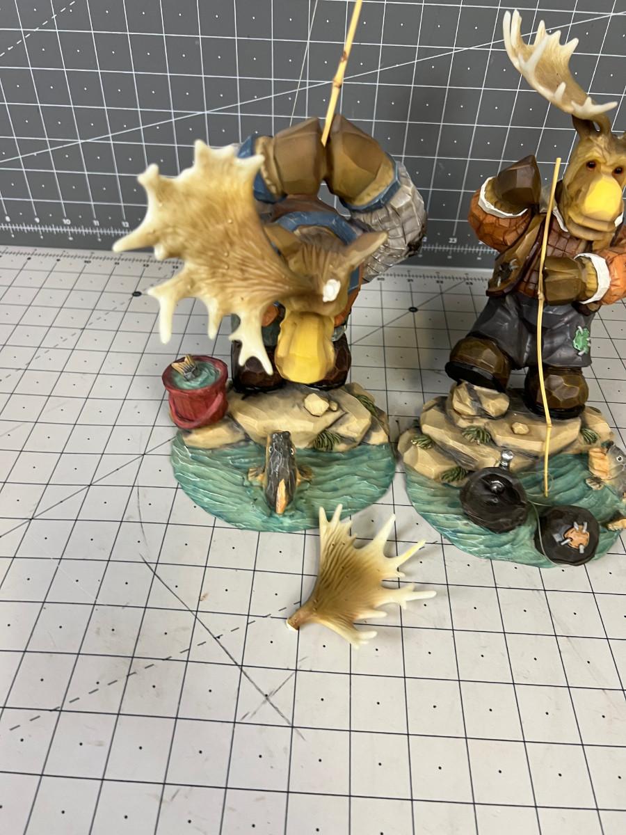 Good Condition 8" Tall, NOTE: One Moose has shed an antler already! I.e. missing an antler
