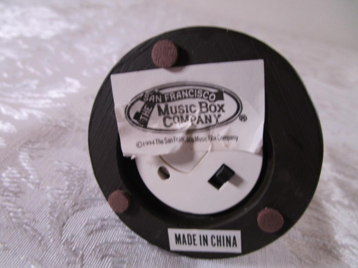 Not tested, needs 2 LR41 (192) batteries, made by SandFrancisco Music Box Co., 3-3/4" tall, base is 2-1/2" in diameter, do not know the tune