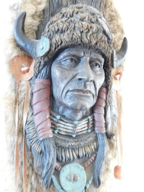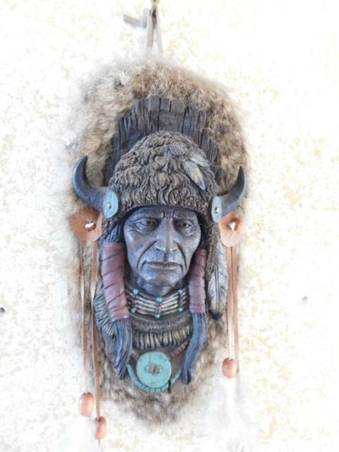 Resin Native American Medicine Shaman Head Dress Wall Decor 13"