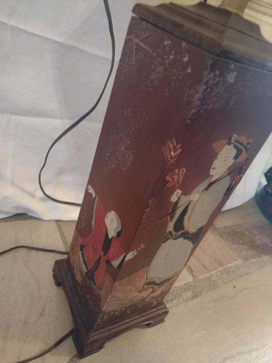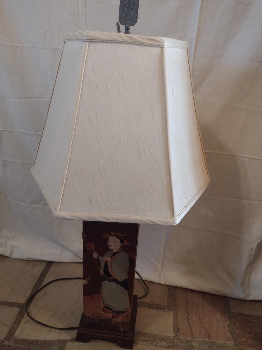 Resin Post with Hand Applied Painted Asian Theme Table Lamp