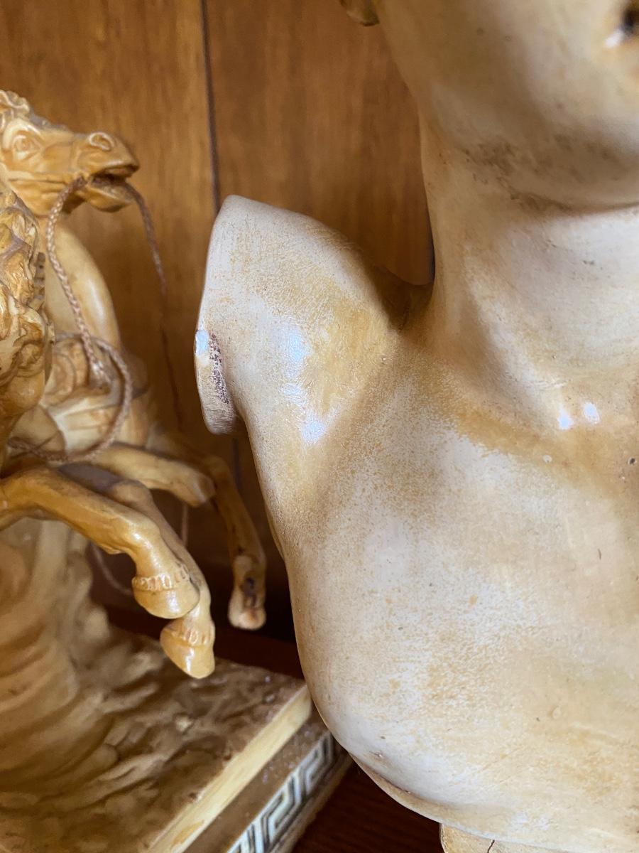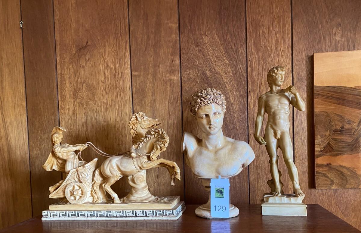Three resin Roman figurines ( all chipped and cracked). Largest 27", smallest 10"