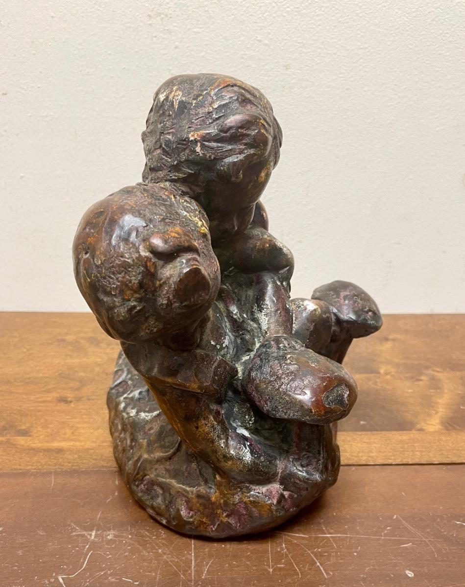 Resin reproduction of a bronze sculpture. Original artist and title unknown, this item is approx. 12" long x 10" tall.
