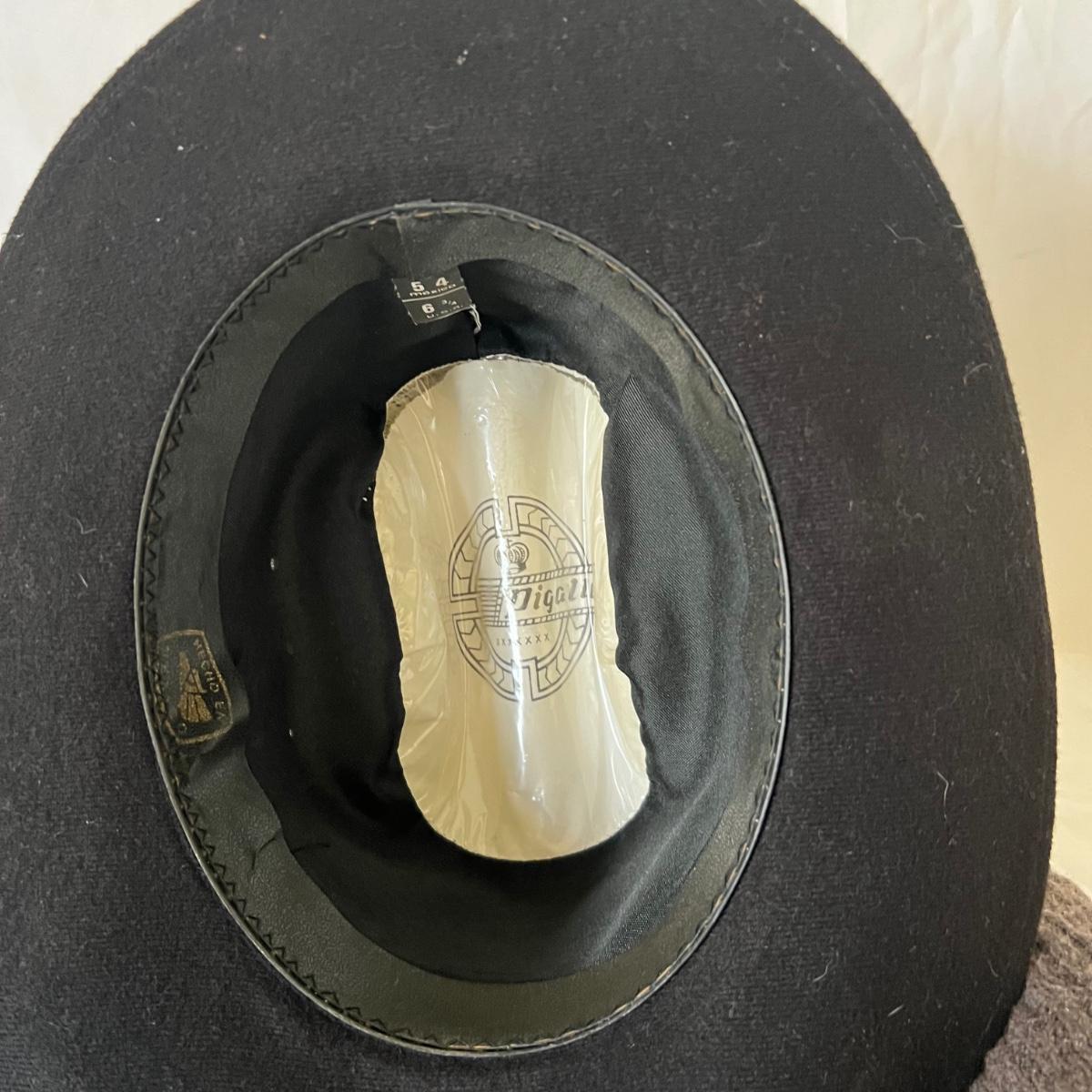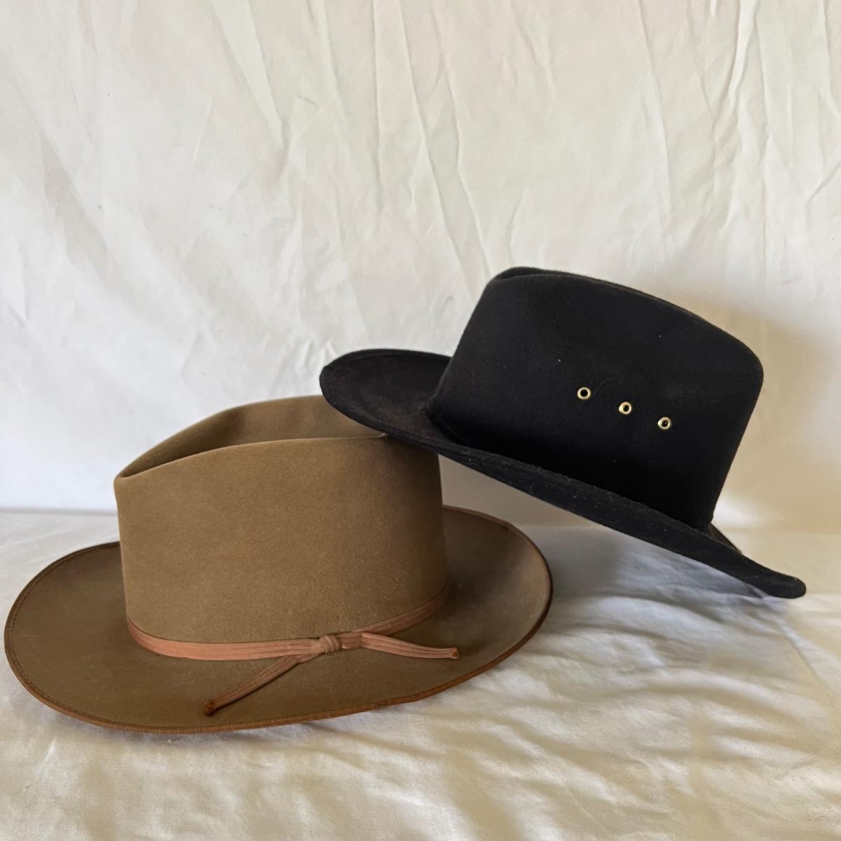 Two cowboy hats includes a Resistol XXXXX beaver hat and a Pigalle black hat; no material found on this hat but feels like felt. See images for size.