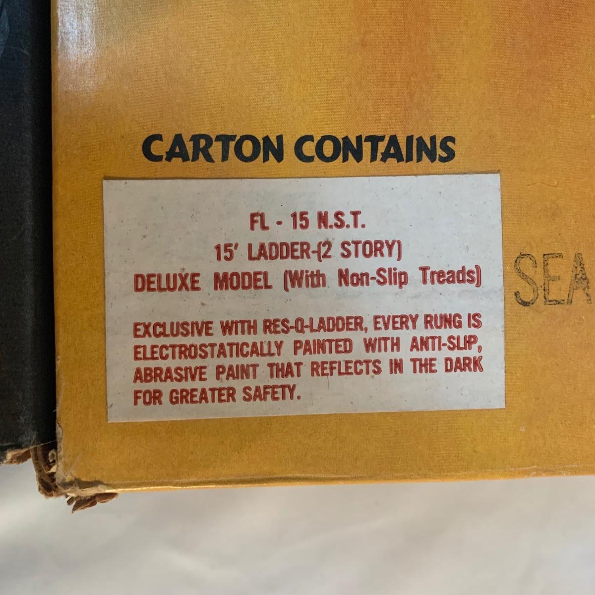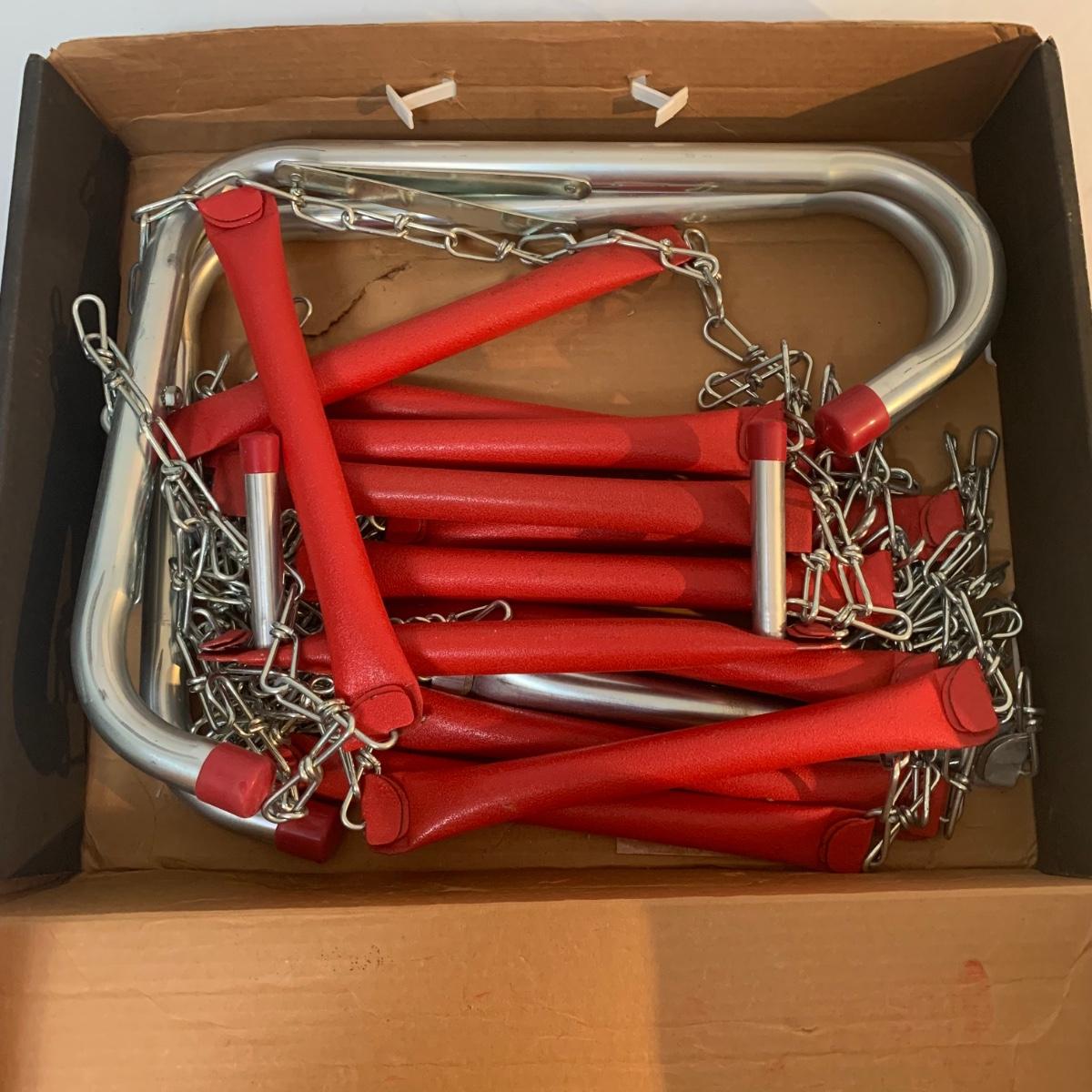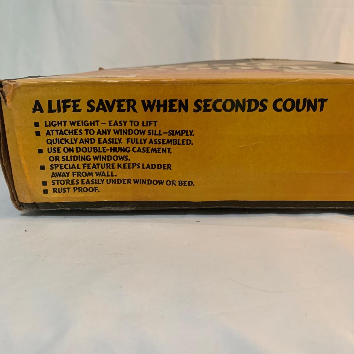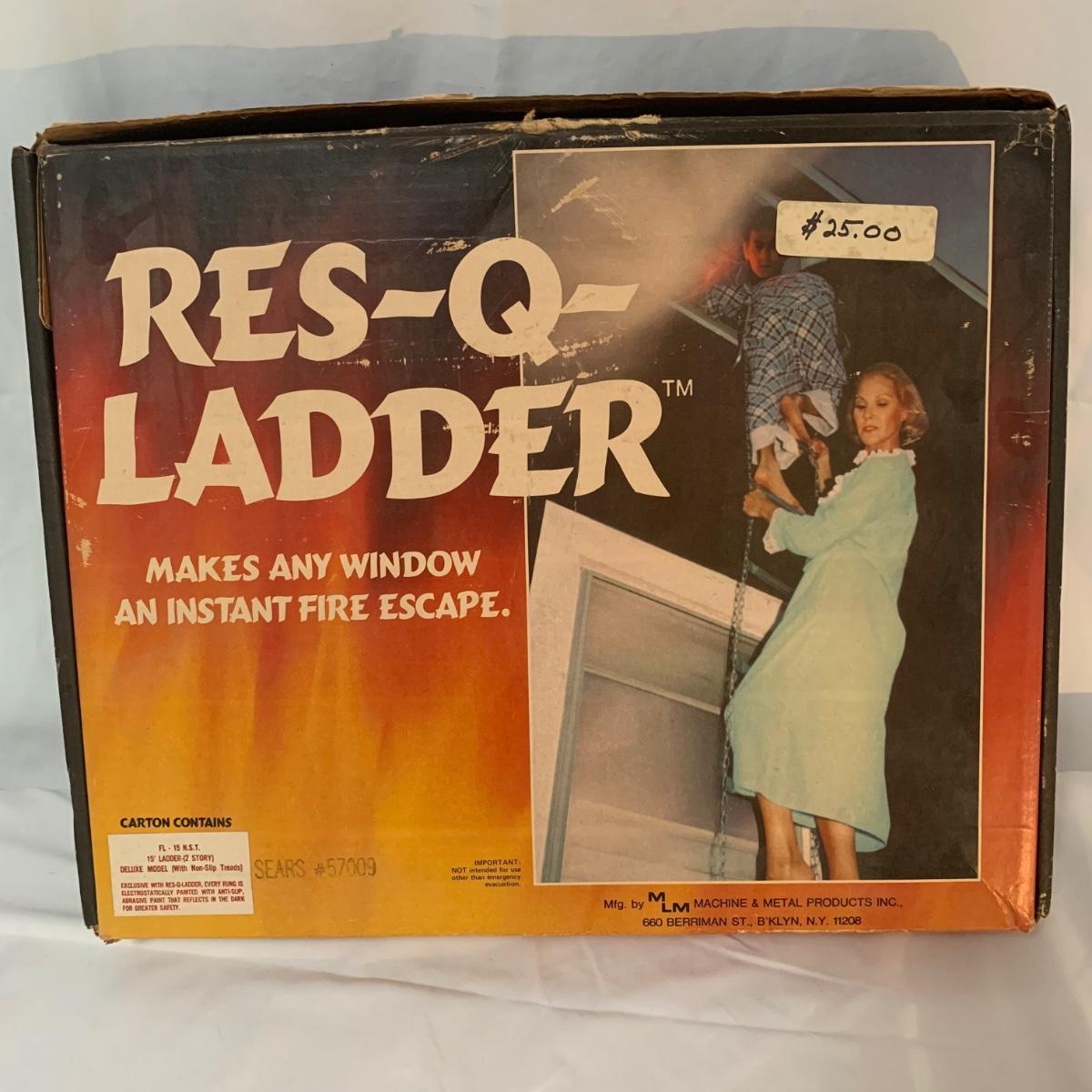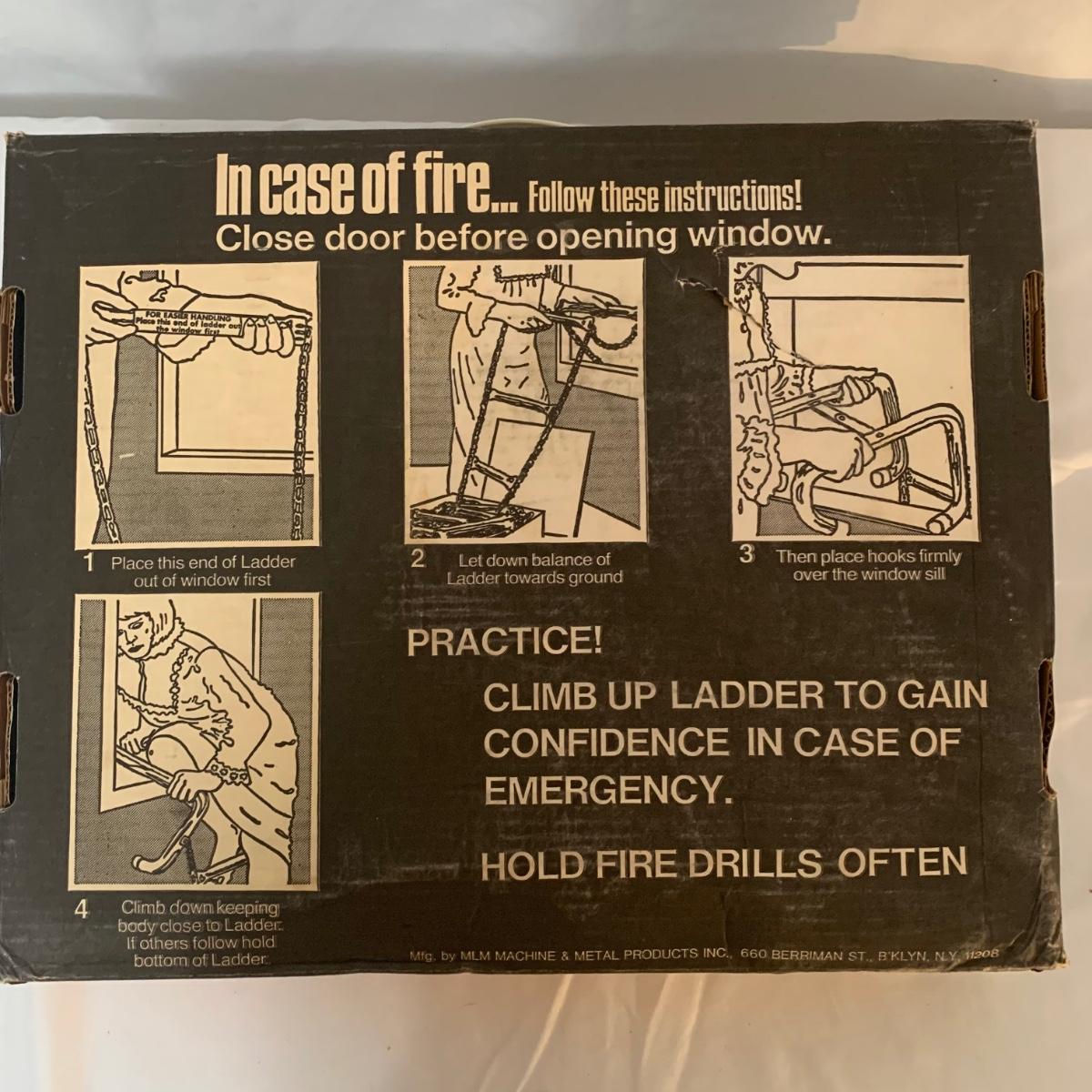 Make safety your priority with this 15’ fire escape ladder. This ladder makes any window a fire escape. The box is a bit aged and discolored from years of storage, but the ladder appears to be in good condition. See photos for details.