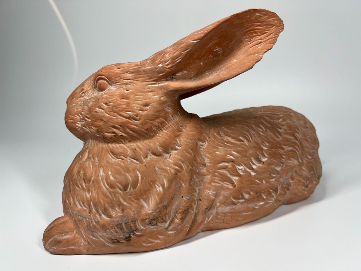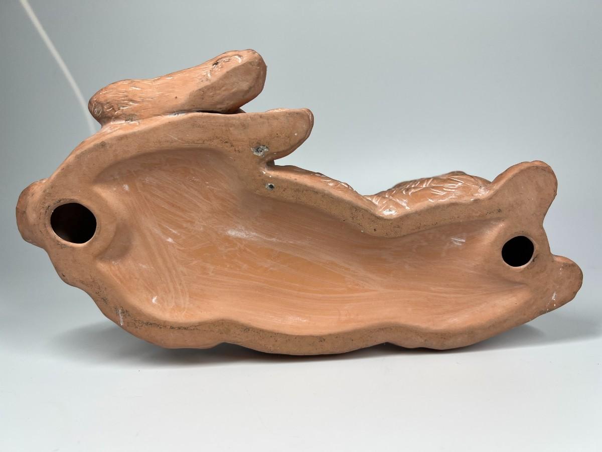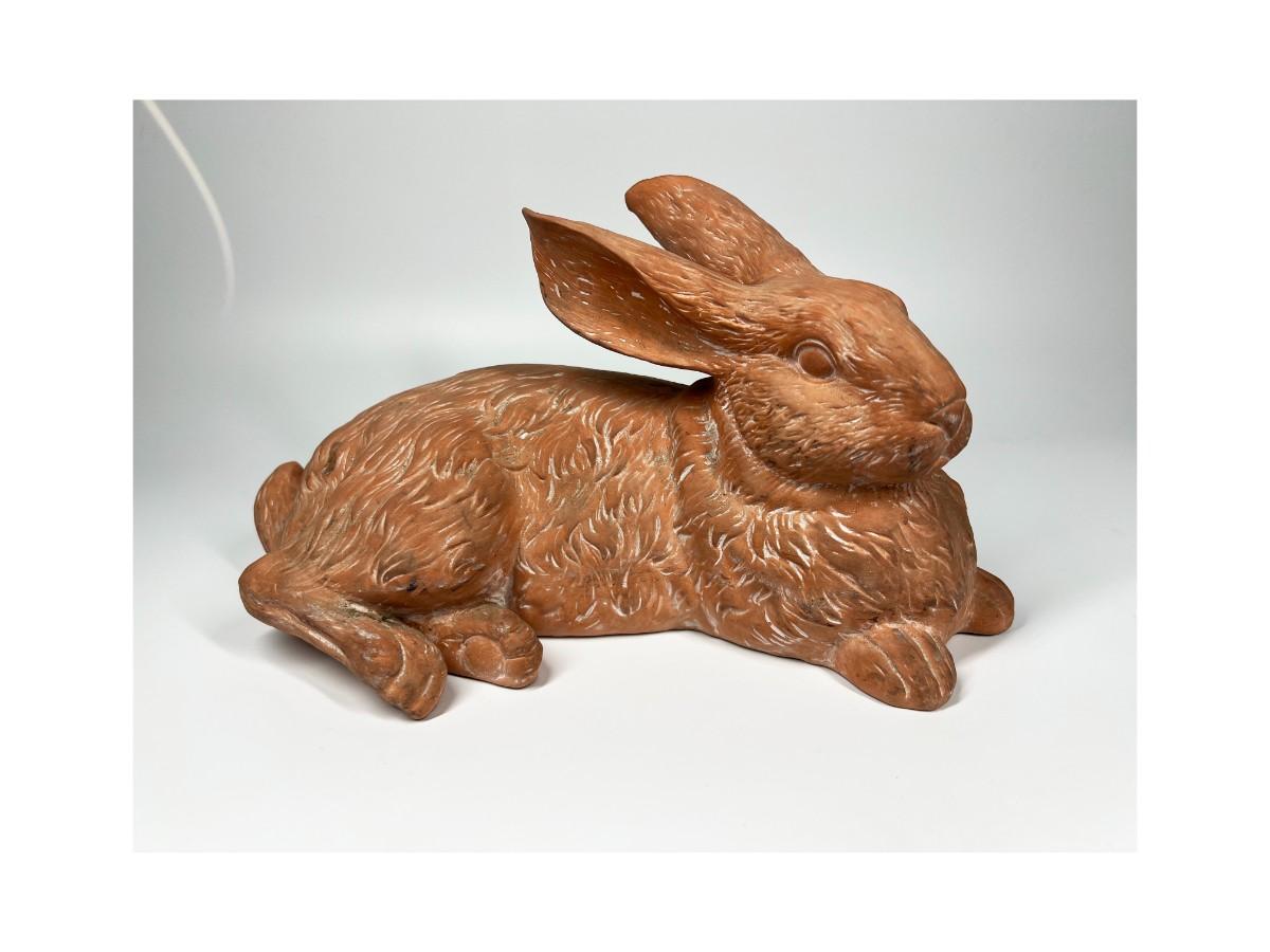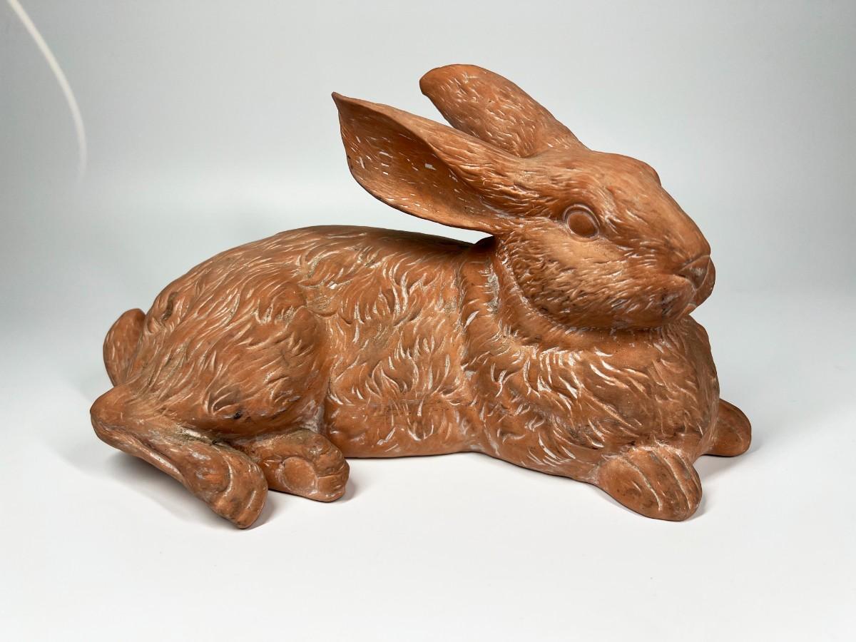 Resting Bunny Clay Pottery Garden Yard Art, there is some light wear to the rabbit and is in good displayable condition. Check pictures for more details and for sizing.