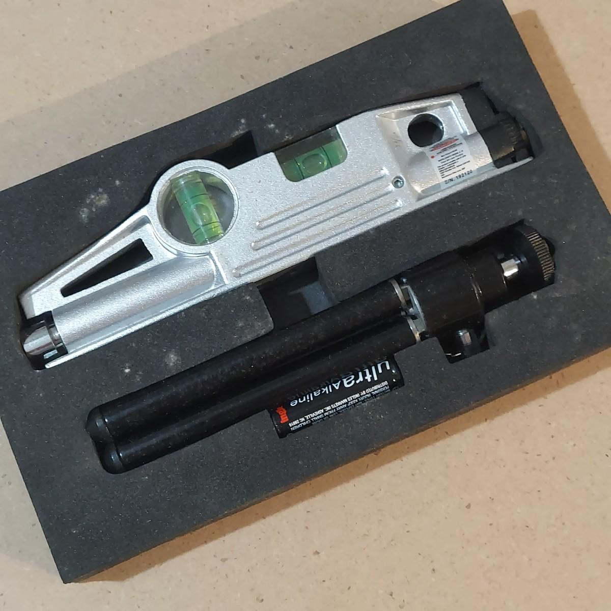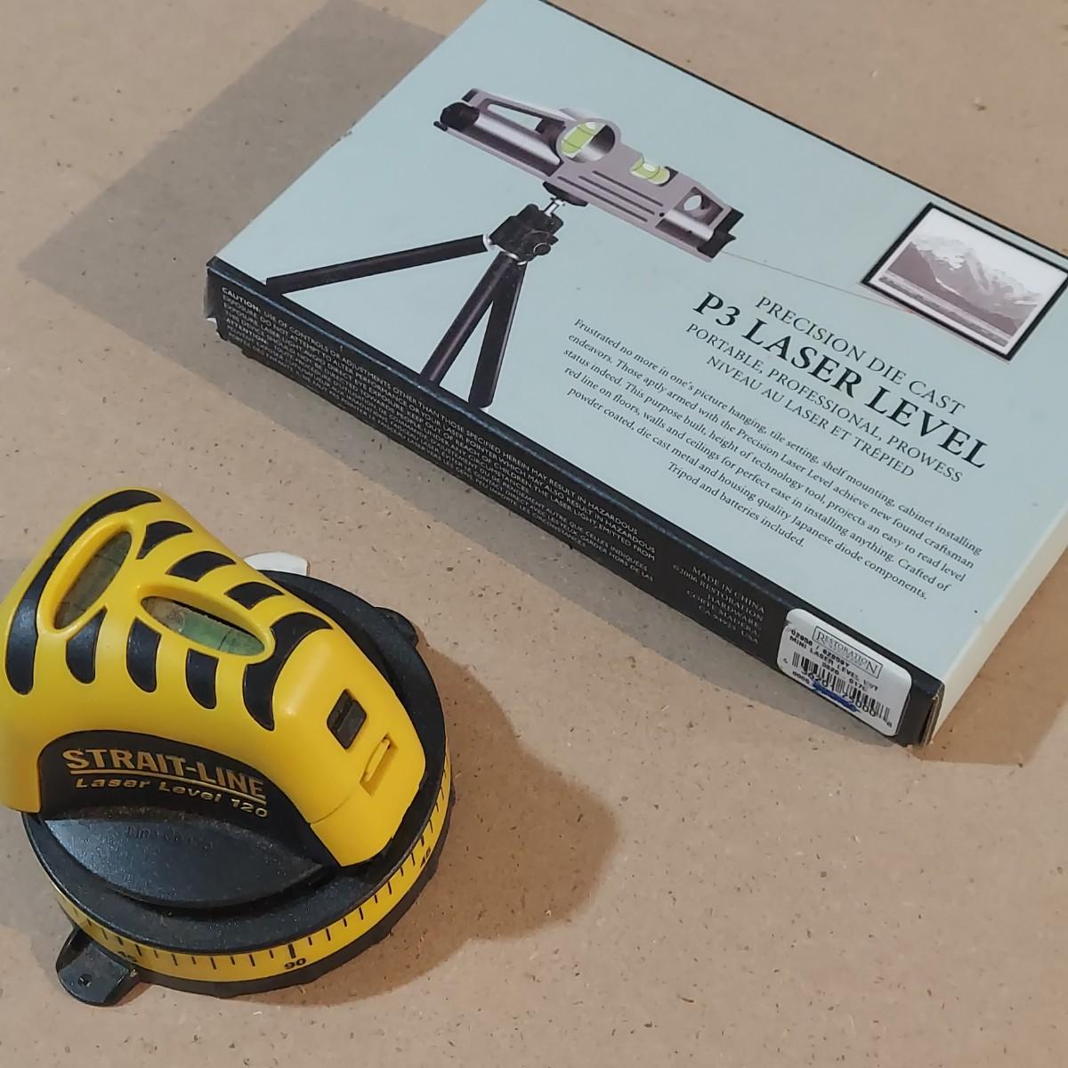 Lot includes a Restoration Hardware brand portable laser level and a Strait-Line laser level. Laser level measures 7” x 3” x 8"H. Please see photos for details. Shipping available