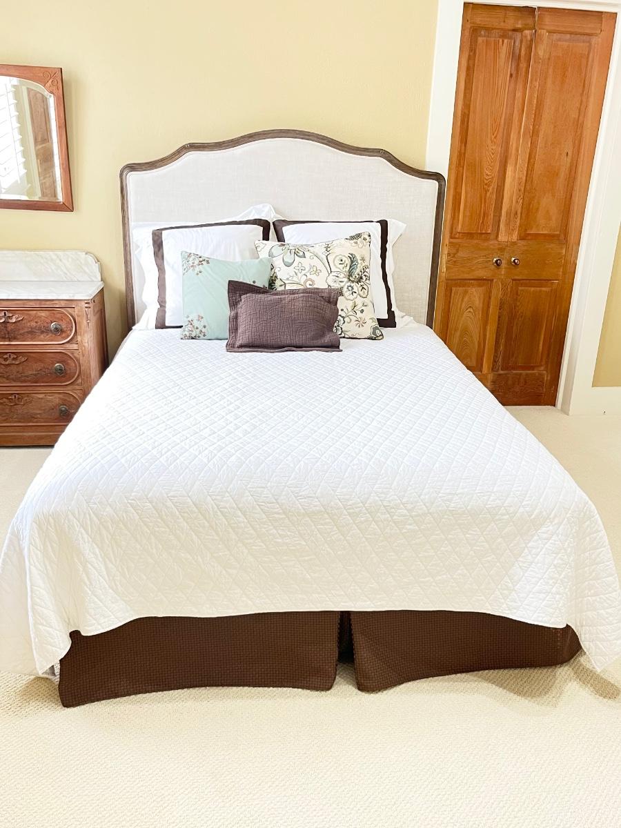 Queen Headboard & Frame included ~ Mattress, box spring & bedding not included.