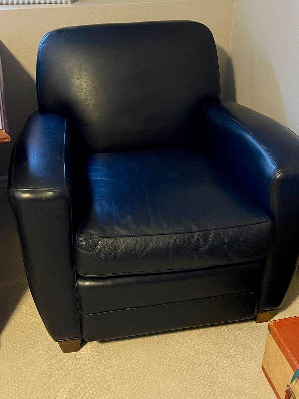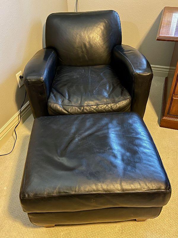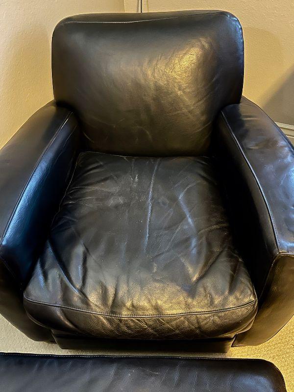 Restoration Hardware Black Leather Lounge Chair & Ottoman #1